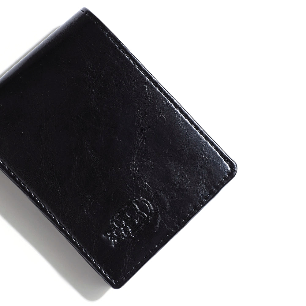 Expertly crafted using high-quality vegan leather with microfiber lining. To maintain its finish, simply wipe with a dry soft cloth or use a wallet shiner to clear dust.