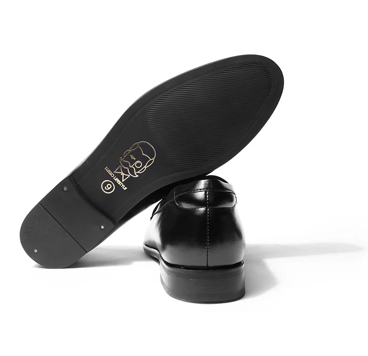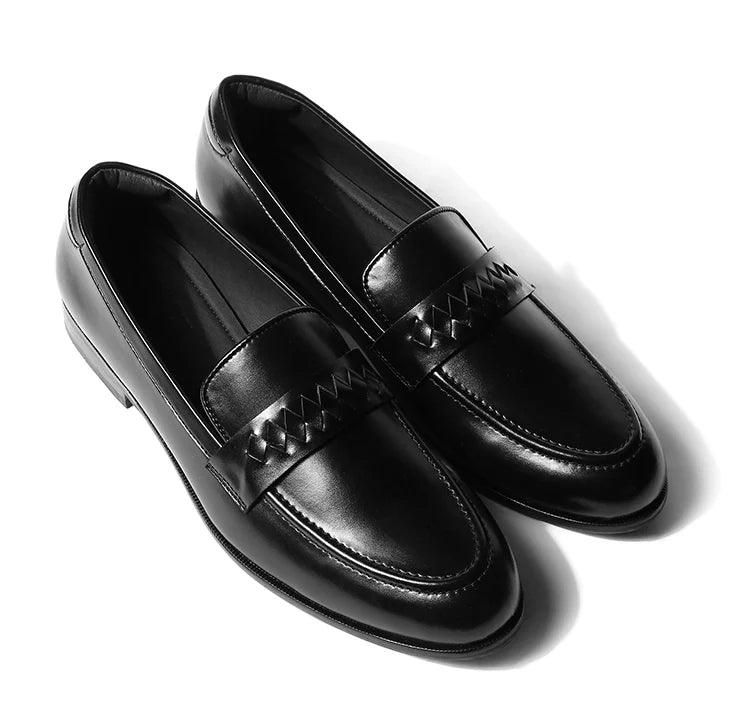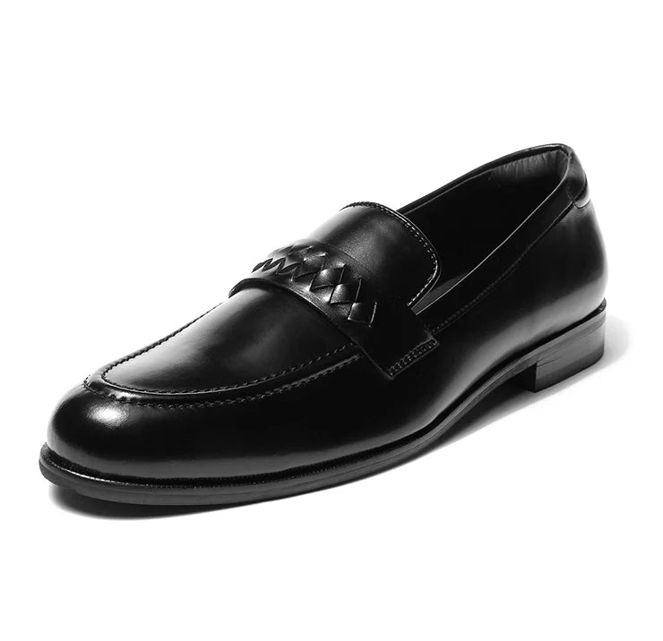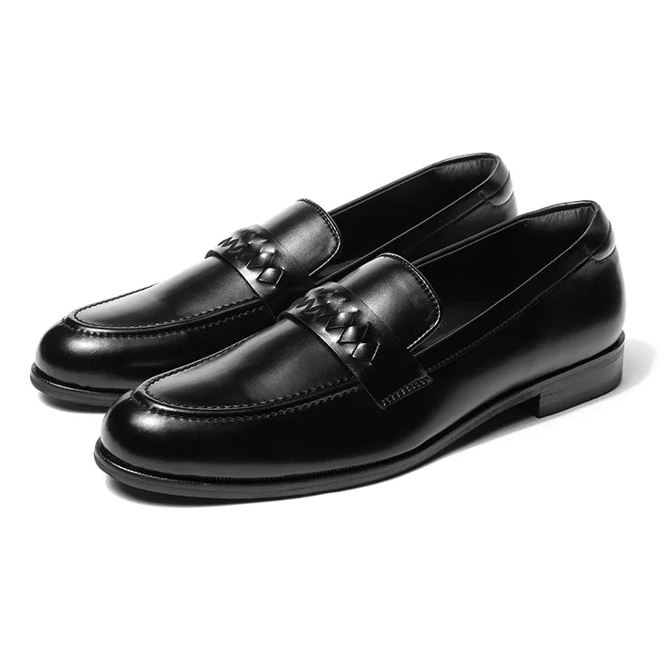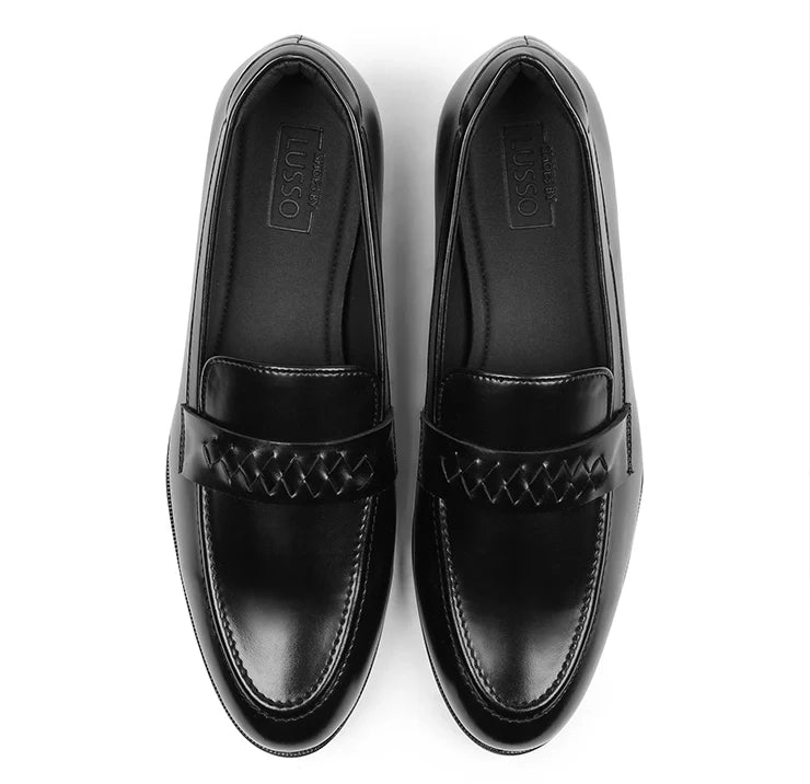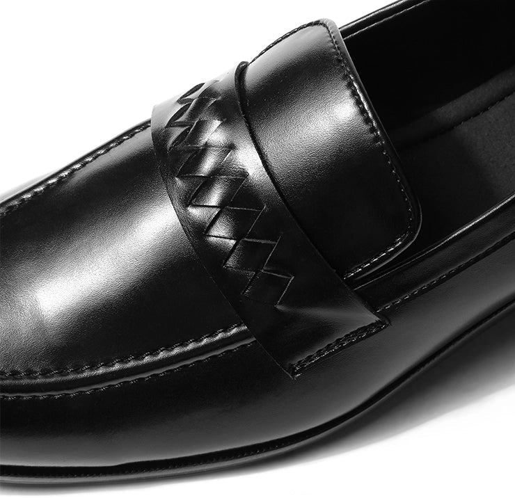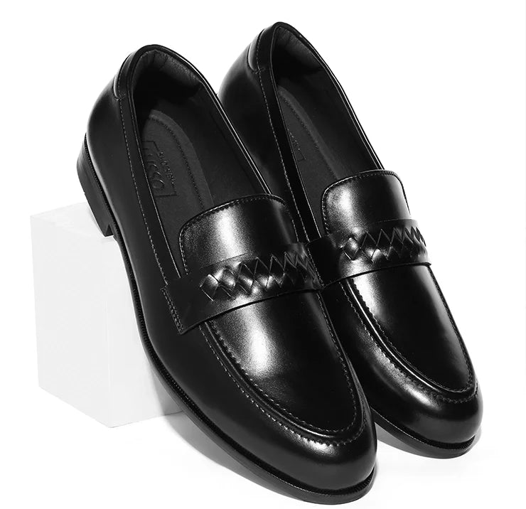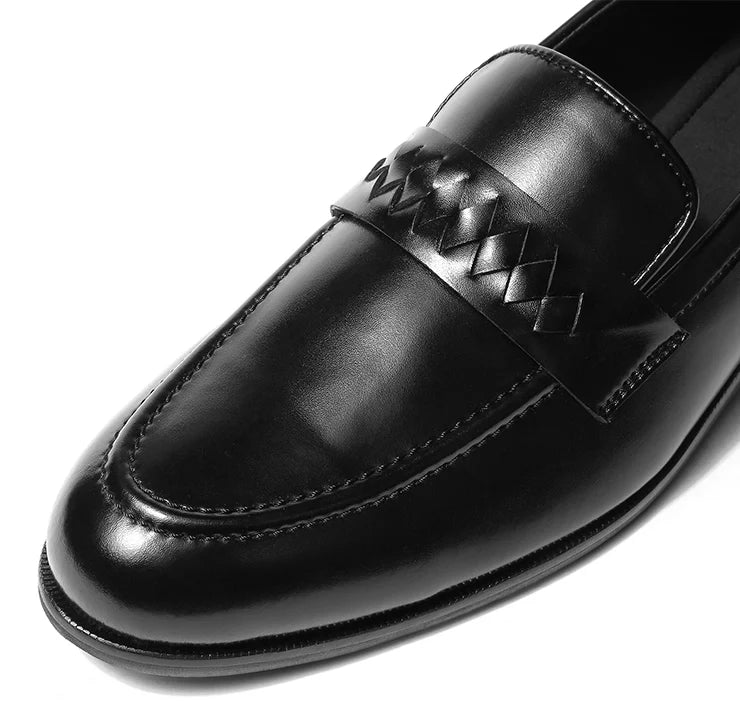 Coren celebrates craftsmanship in a form that remains unmistakably modern. A plush black vegan leather base provides the foundation, while the interwoven strap across the vamp introduces a crafted texture. The round toe keeps the design balanced, bold yet elegant, making it versatile across settings. Structured construction ensures durability, while the clean finish guarantees a timeless appeal. Coren adapts effortlessly from the boardroom to dinner settings, adding depth to every outfit. It’s not just a loafer, it’s a statement in detail-driven luxury.