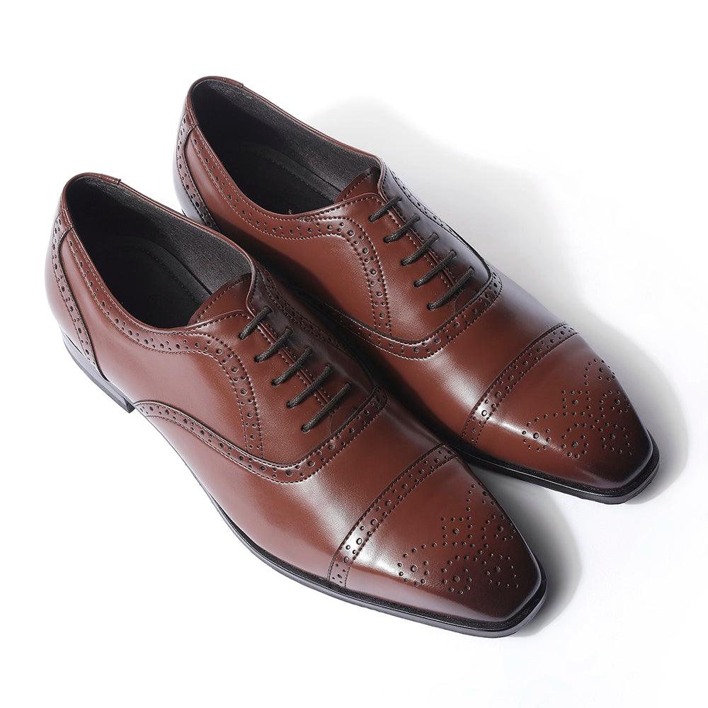 Confidence and Brilliance inspired us to create this irresistibly good-looking pair of oxfords. The "Merlin" is definitely not just a pair of shoes, a classy british tan upper is beautifully ornated with brogues on the toe and the contours of the square toe silhouette. You won't be able to take your eyes off of these, we know we can't.
