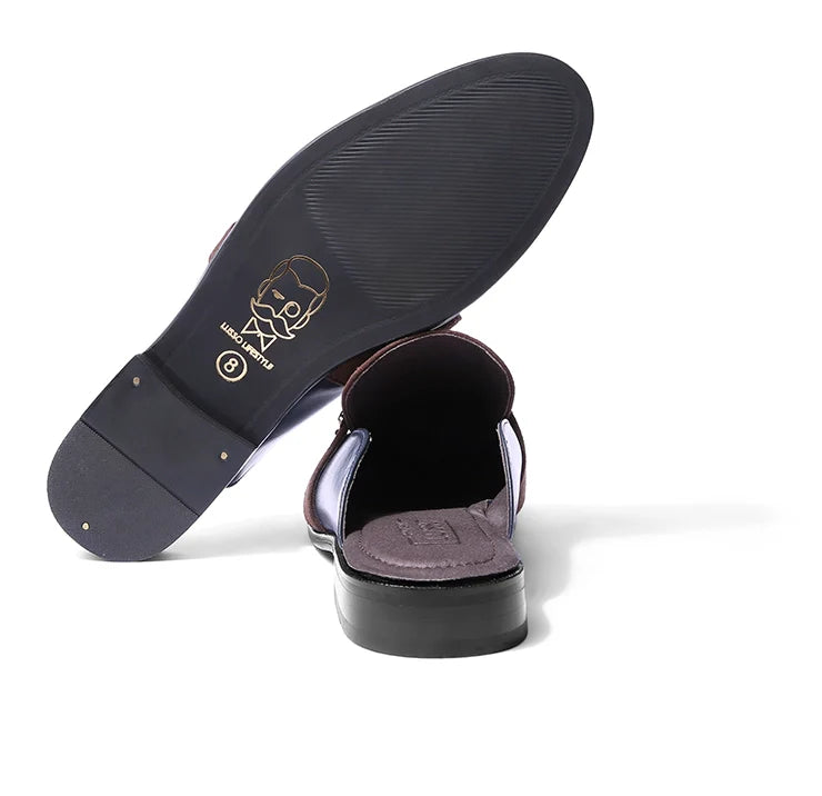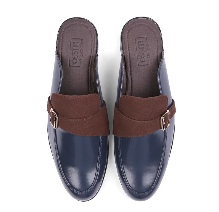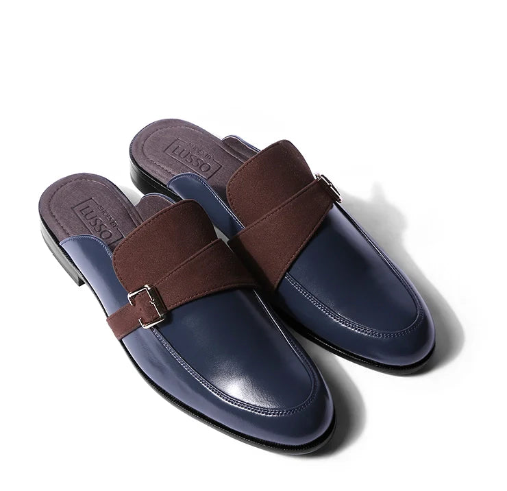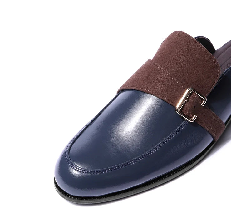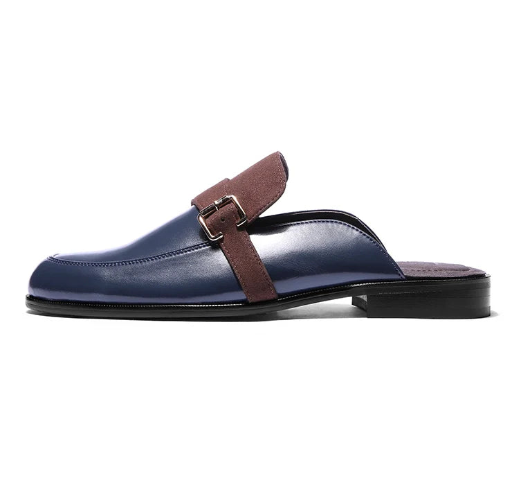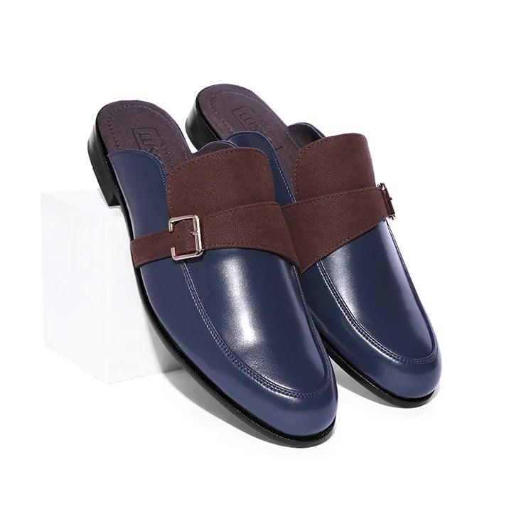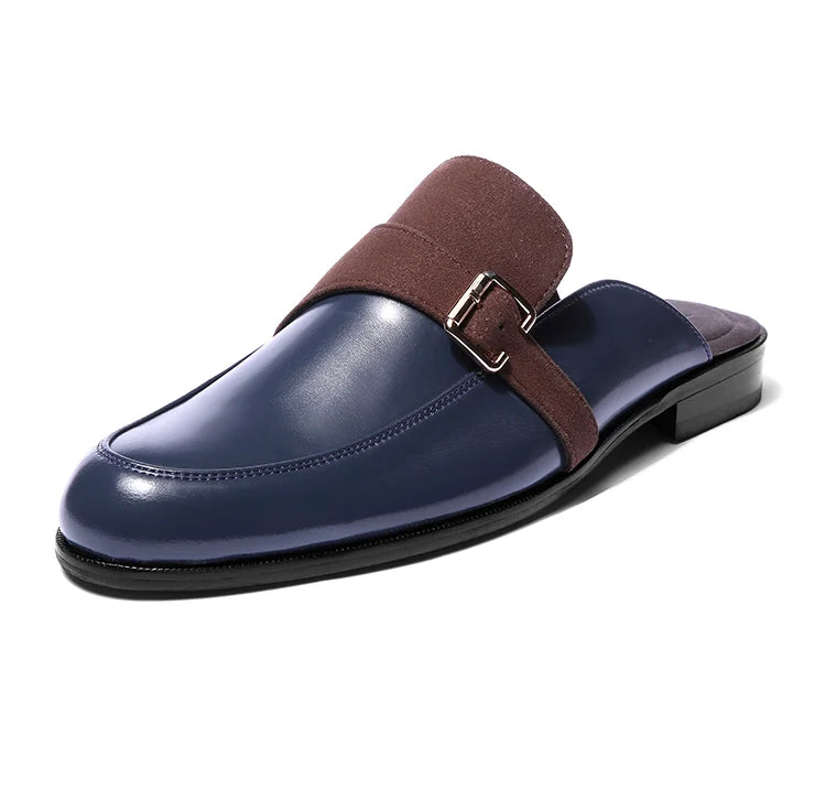 Sometimes style is about knowing when to keep things simple, and the Orrin Mule captures that perfectly. Crafted in deep blue vegan leather and rich brown suede, it creates a sharp, distinctive look. The golden buckle detail completes a refined look.