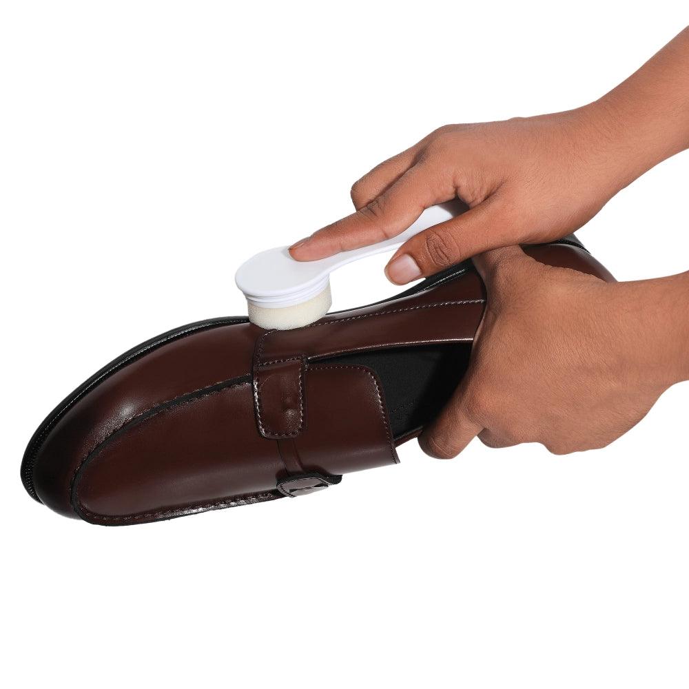 • Clean your shoes with a dry cloth, then use the shiner and let them rest for 15 minutes before walking out in your Lusso.