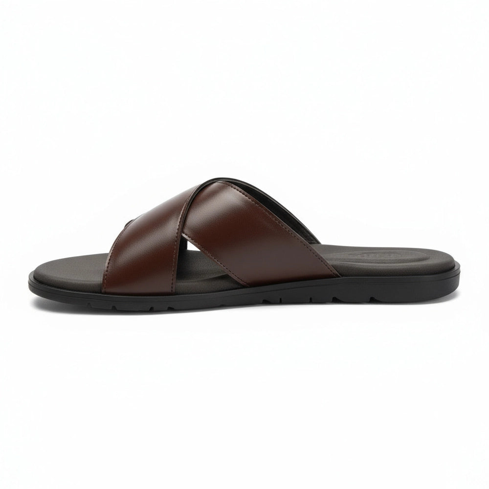 Introducing Mirah. Crafted in rich dark tan vegan leather, the cross-strap silhouette reflects balance and harmony, while the tan keeps it versatile for every setting. Inspired by the lyrical grace of Indian heritage yet crafted with a modern sensibility, Mirah feels both familiar and fresh. Lightweight, comfortable, and timeless, it’s the chappal that carries you with quiet confidence.