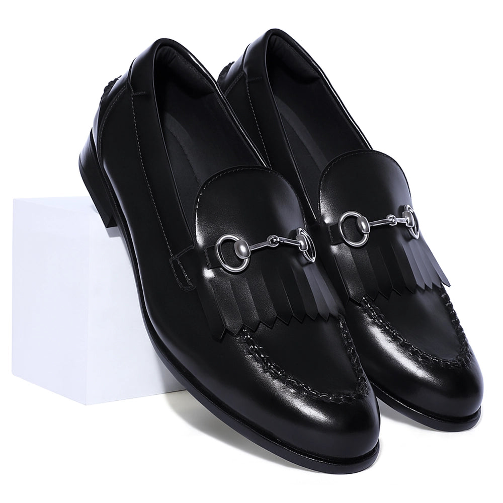 If refined confidence is your signature, the Gustoso 2.0 is your perfect match. Handcrafted in sleek black leather, these loafers feature the iconic silver horsebit detail paired with a modern kiltie fringe for an elevated twist. Designed to balance timeless elegance with a daring edge, they’re built for the man who commands attention without saying a word.