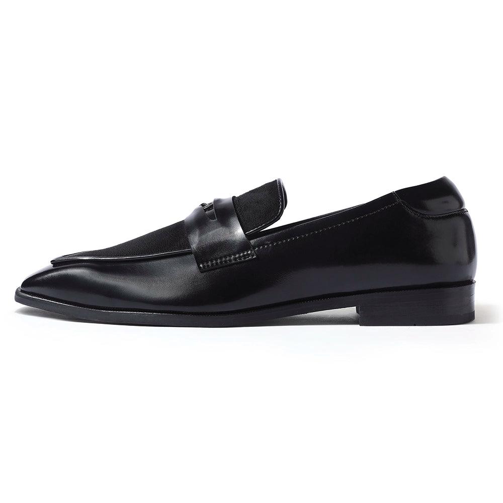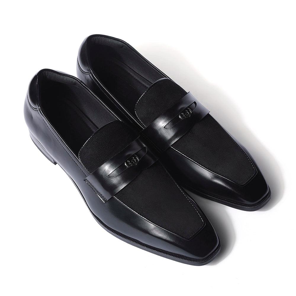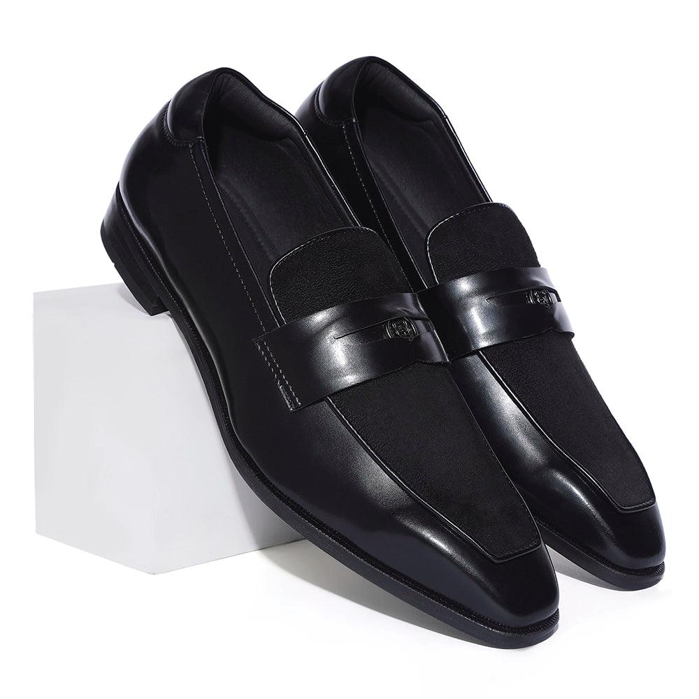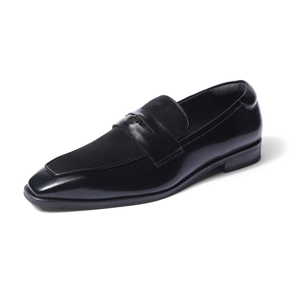 A pair you will always go right with. Ultra chic design with suede tongue and and a posh black upper. This square-toe penny loafer is well and truly an embodiment of pure class.
