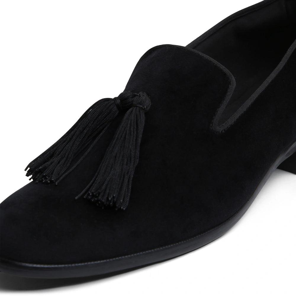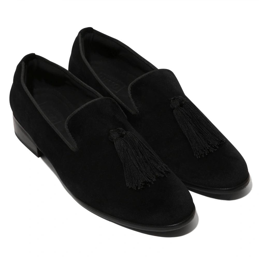 Meet "The Joma," a shoe that embodies simple elegance and ethical luxury. Its design is inspired by the timeless sophistication of a classic tassel, where style meets simplicity. The Joma features a plush black velvet upper, complemented by a distinctive, oversized tassel, adding a touch of flair. Perfect for the modern man who appreciates understated luxury, this slip-on shoe combines comfort with a conscientious choice for the environment. It's not just a shoe, it's a statement of refined taste and sustainable fashion, ideal for any occasion that calls for a touch of class.