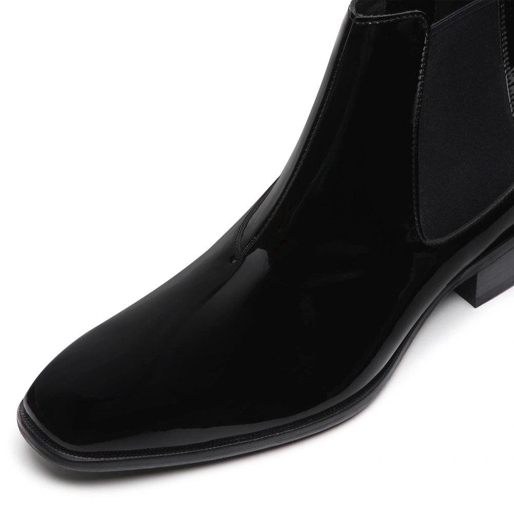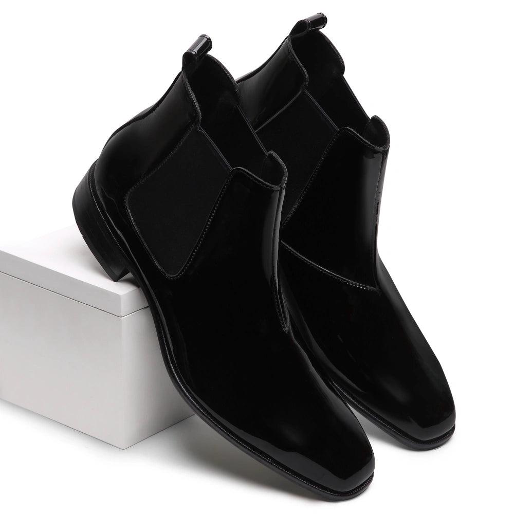 The long-awaited Lusso Boot collection is finally here. Unveiling "Martel", a timeless classic Chelsea boot featuring a modern square-toe silhouette, crafted with the same, familiar artisanship you associate with Lusso. The Martel is created from an irresistible patent black finish on the upper offering a polished look that stands out in any setting. These boots are the definition of versatile, pairing seamlessly with everything from tailored suits to tuxedos or western formals, making them a staple for any fashion-forward wardrobe.