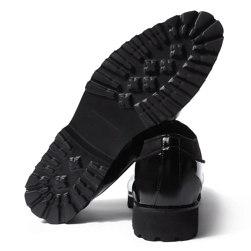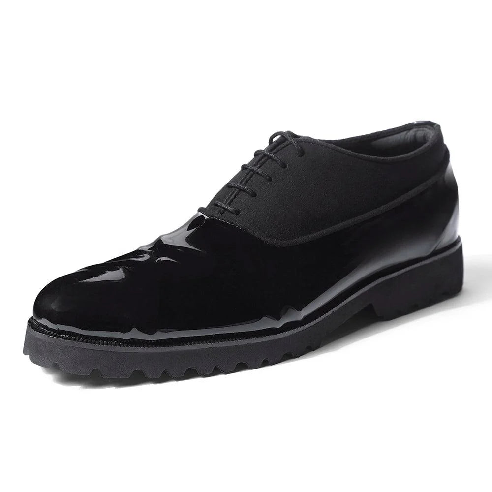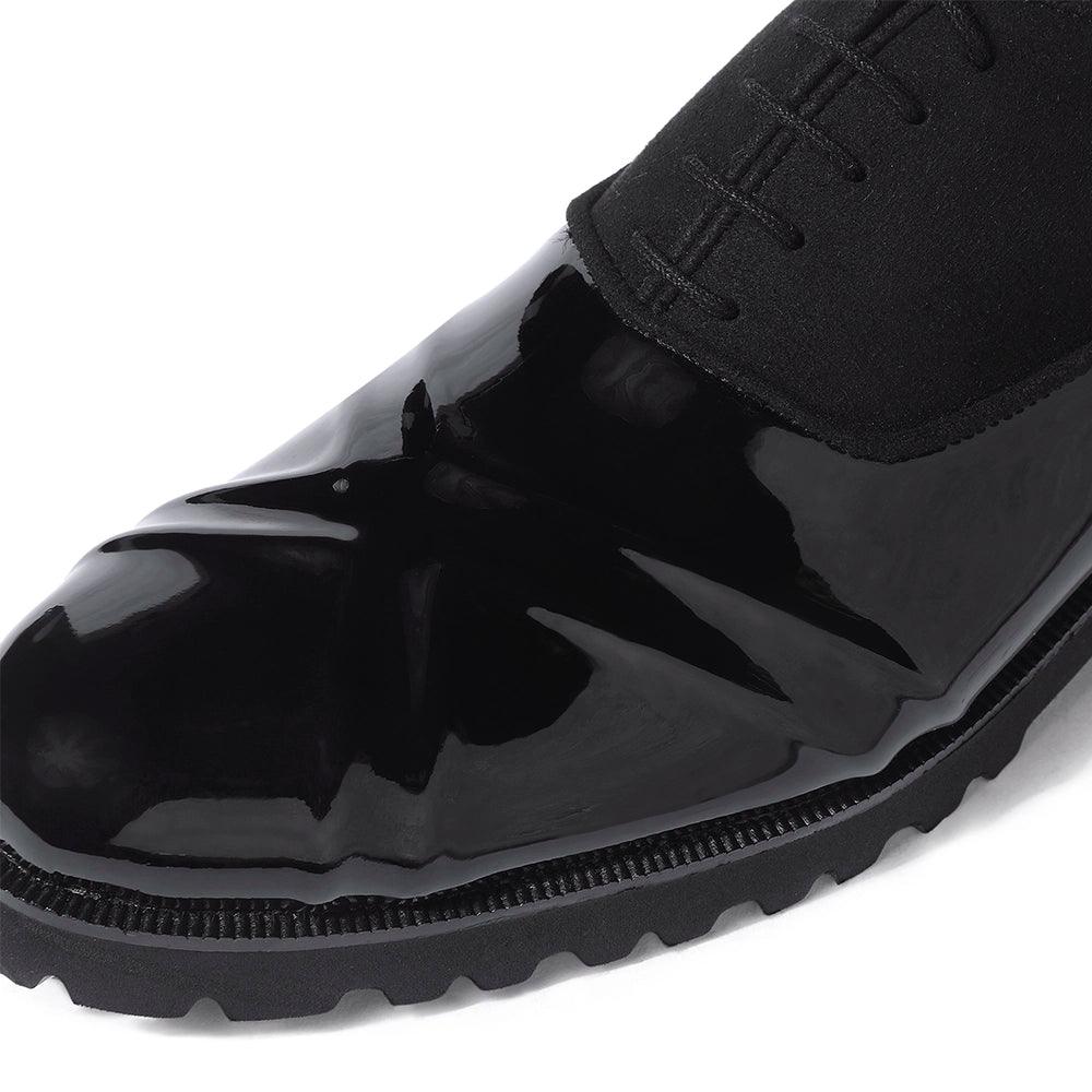If turning heads is your thing, this must be in your wardrobe. The "Monroe" is meticulously created to give you a bold and confident stride. Crafted from our shiny, patent black vegan leather and black suede upper, the Monroe is designed with a captivating cross, debossed on the toe for a remarkable look.