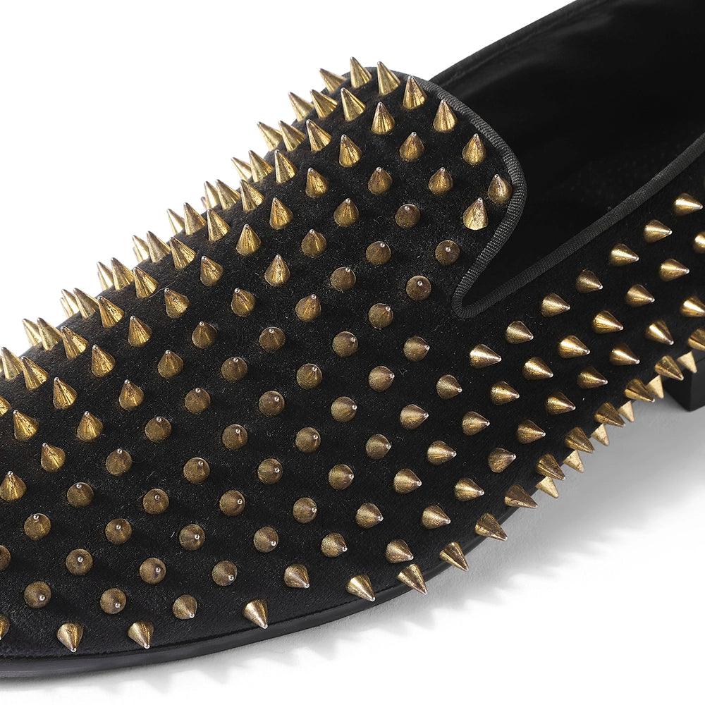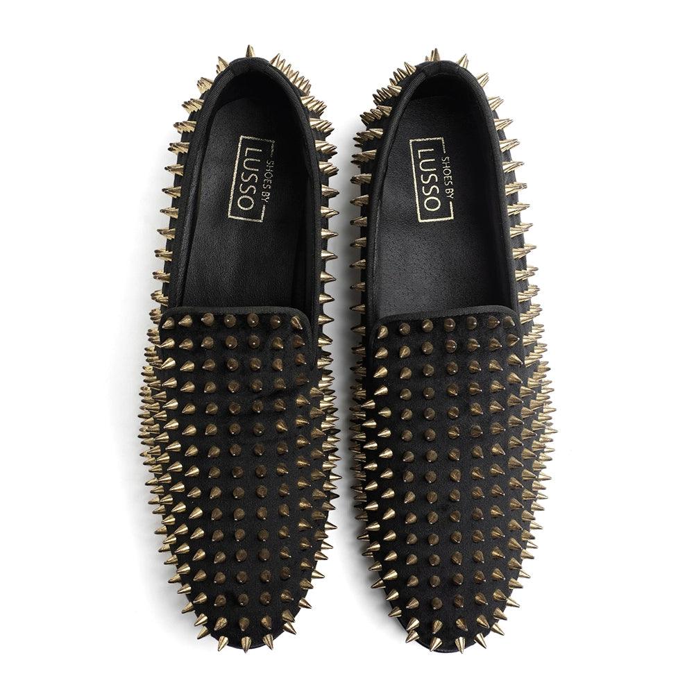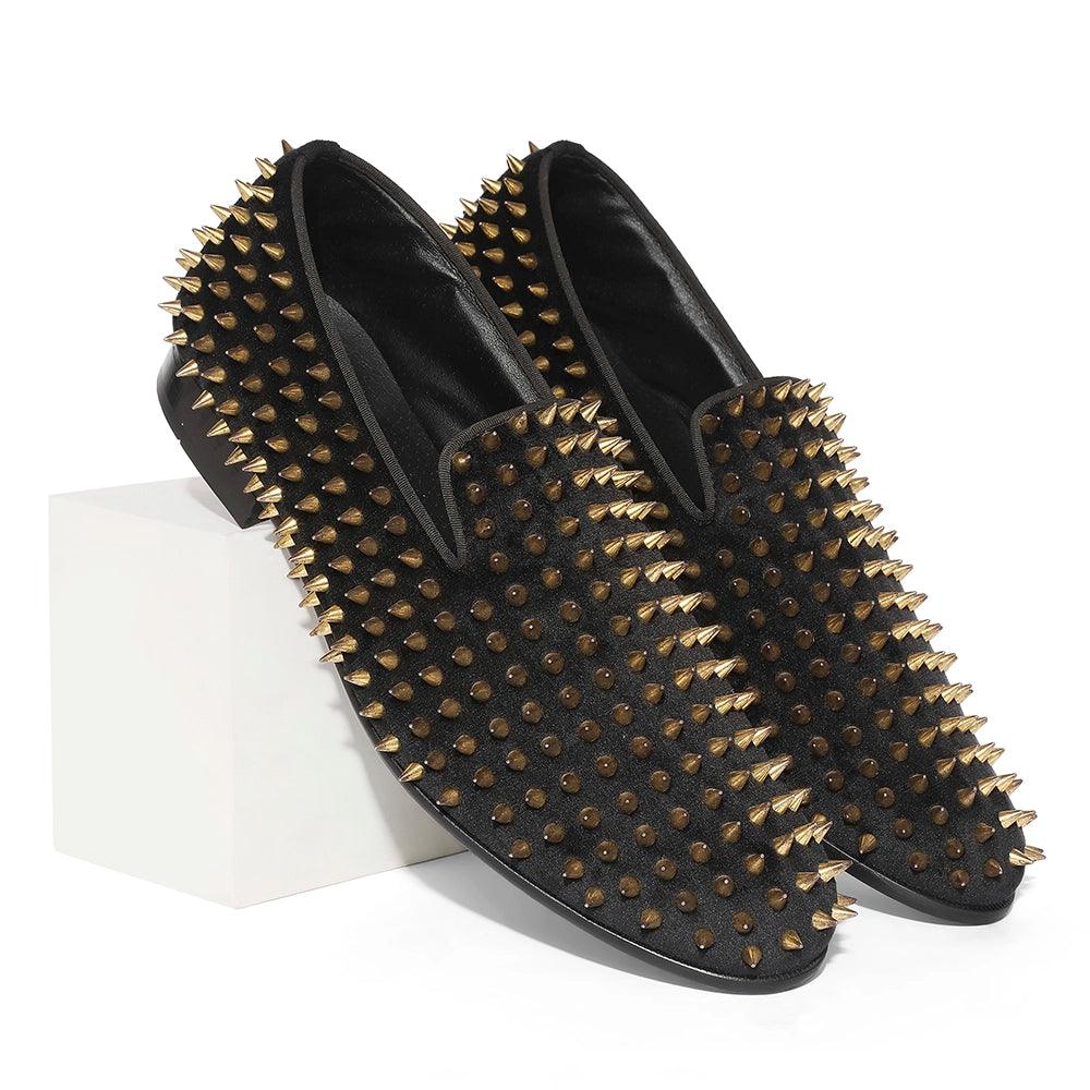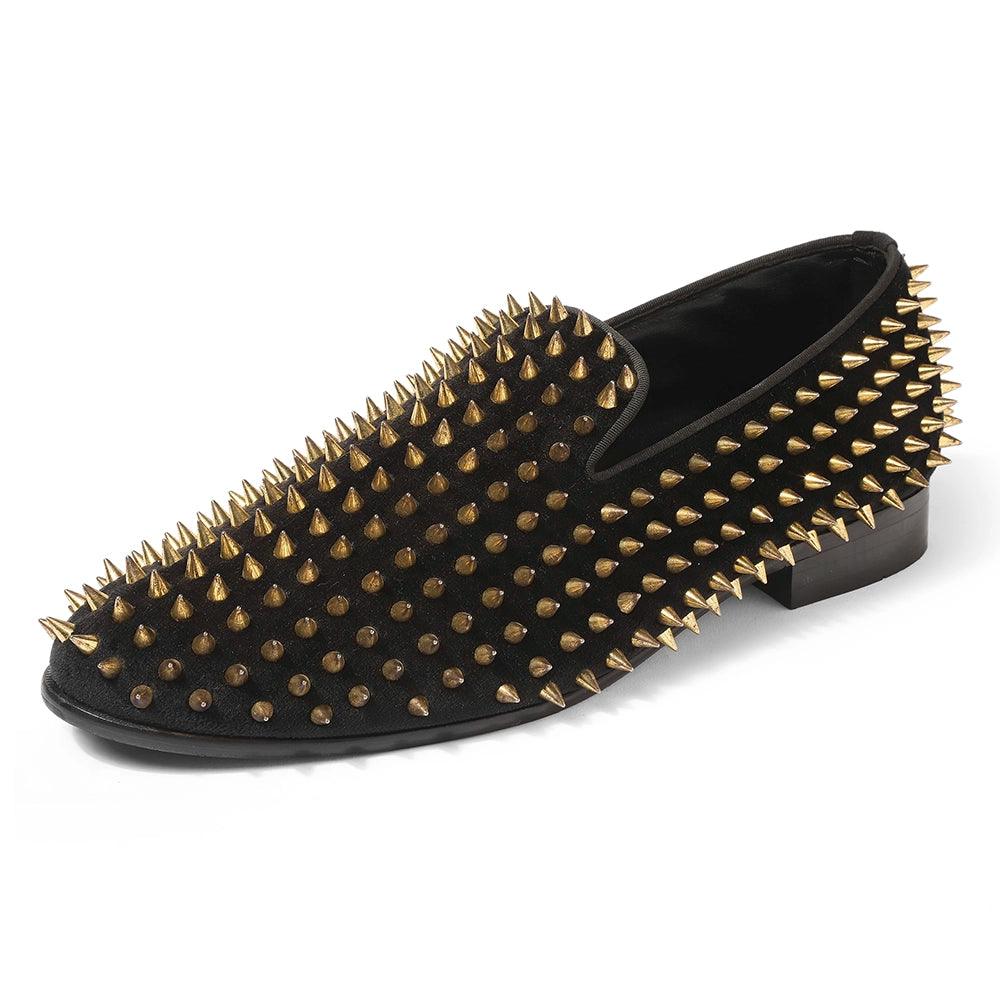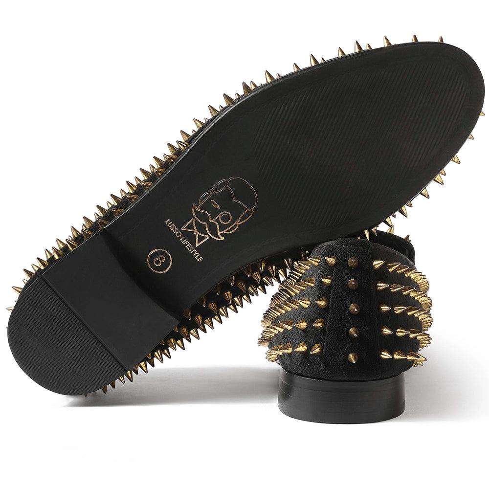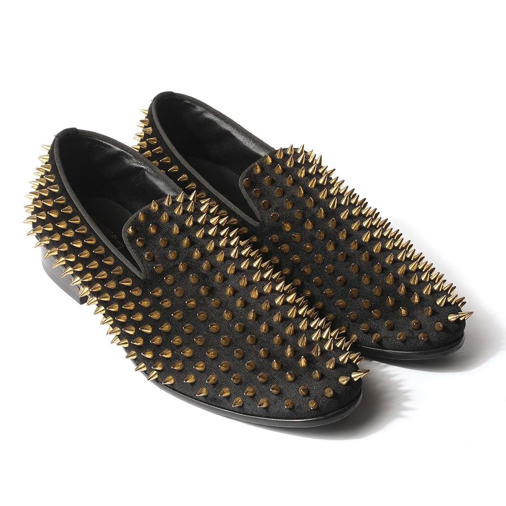 The "Charlotte" is here. Adorned with up to 700 gold-plated stainless steel studs, handcrafted on a rich velvet upper, it doesn't get more blingy than this.