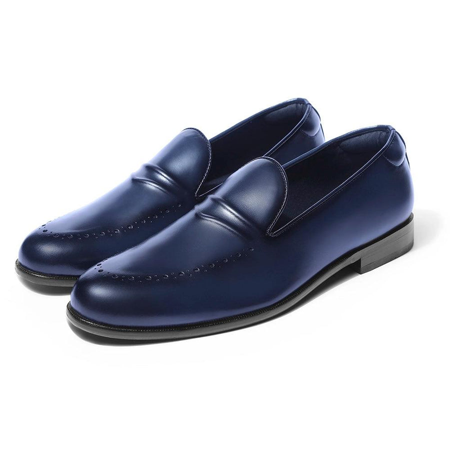 Introducing "Nicoh", this pair of blue loafers is not made to stand apart but resemble muted luxury. Intricate brogues and subtle, elevated hand tooling give this pair a rich look.