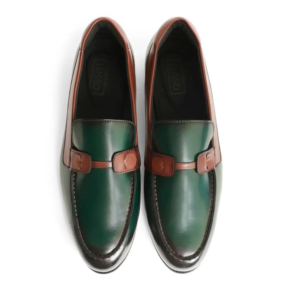 Made for the true gentlemen, these ultra-modern loafers are finely crafted and designed for a look that resonates with class and luxury. The "Baldwin" - Green Slip-on is a pair that redefines elegance with every stitch. This pair is designed in a catchy green upper and is complemented by a lovely contrast of Tan on either side of the tongue completing the look. The "Baldwin" in our signature, evergreen, round-toe silhouette creates a story of confidence and comfort weaved together.