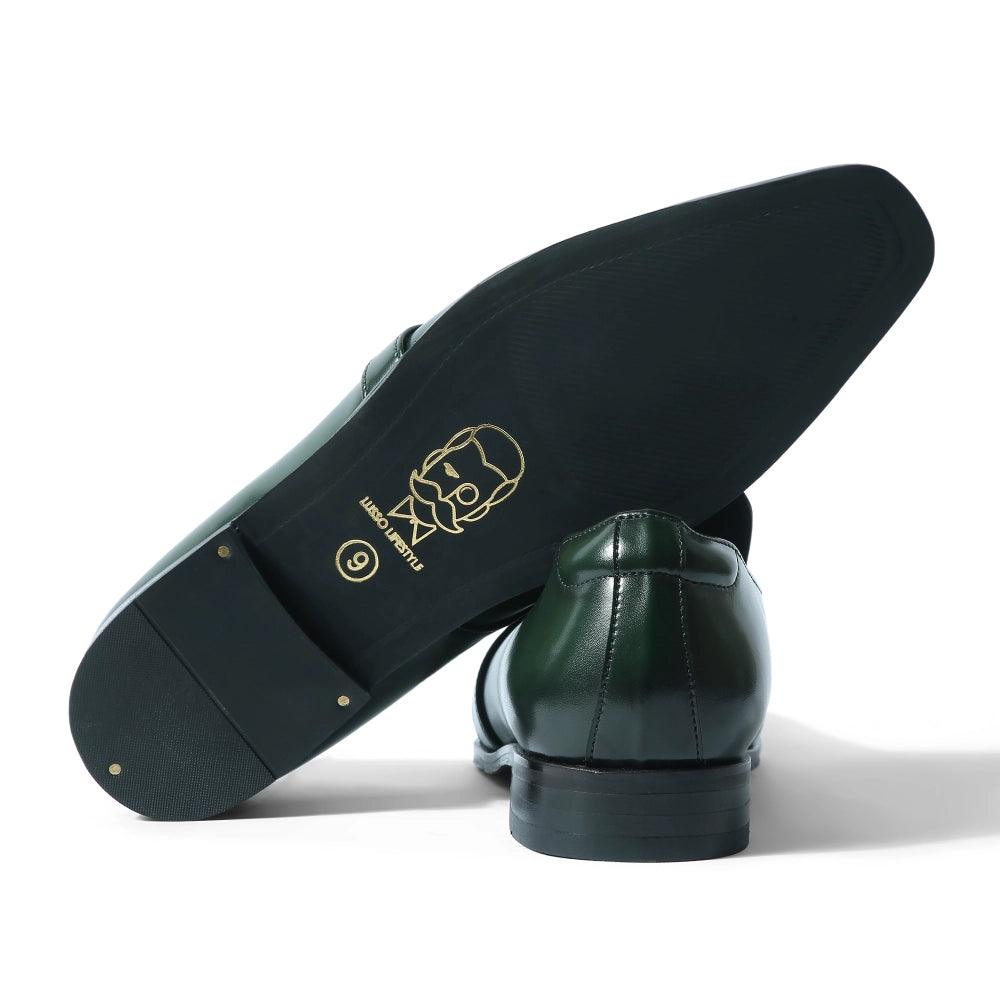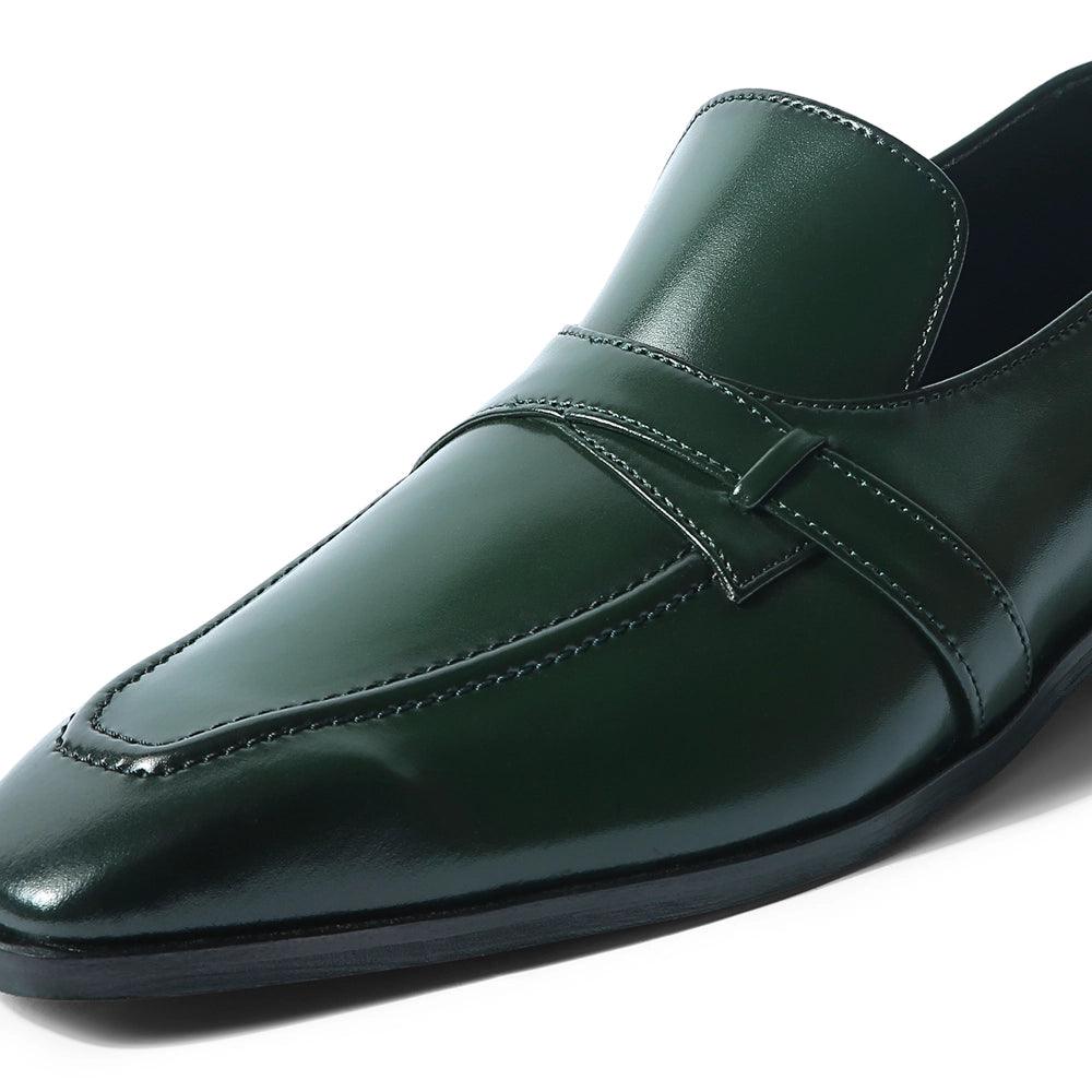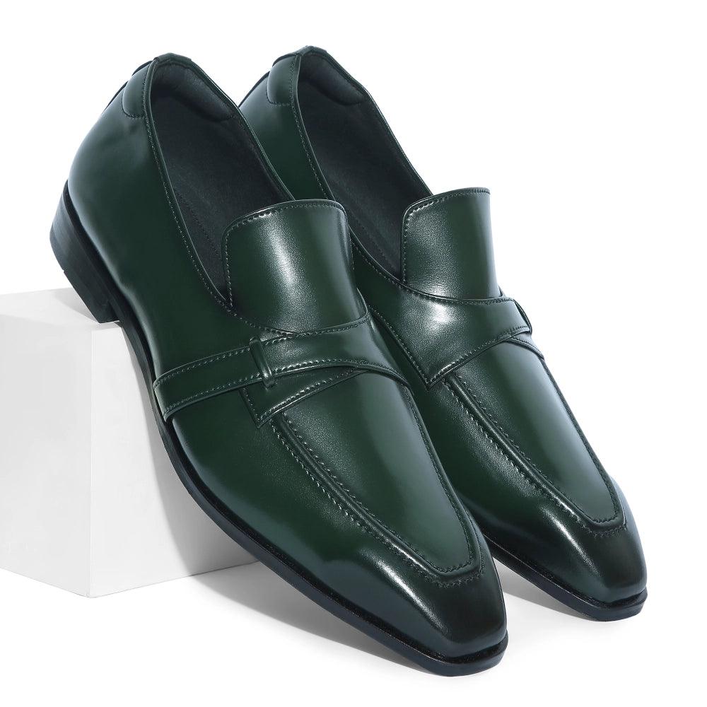 Introducing the "Grava" a piece of pure, unrivalled class. This pair of Green loafers is crafted in our signature square-toe silhouette and finished with a black dual tone on the contours. A class act indeed.