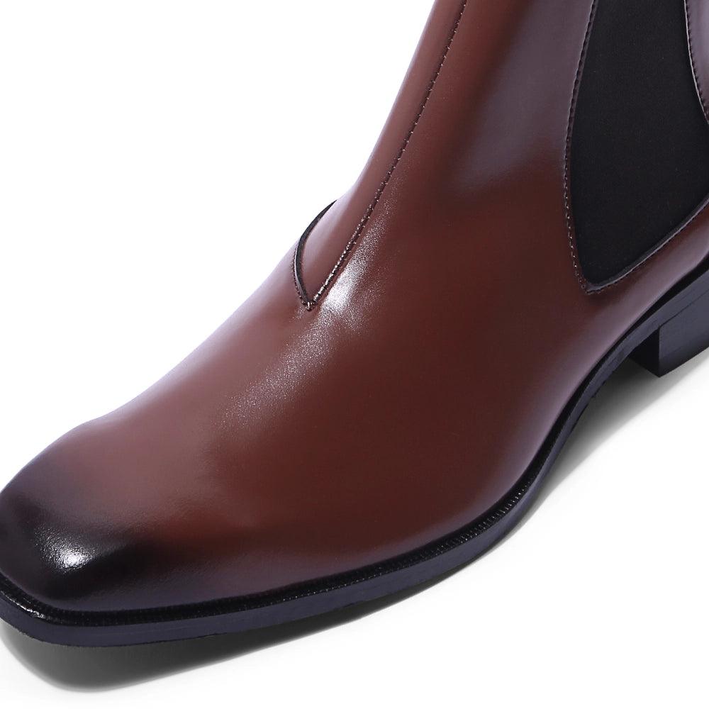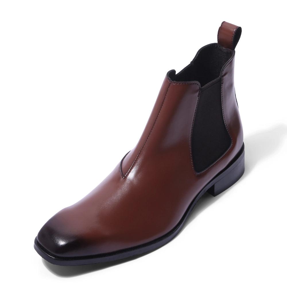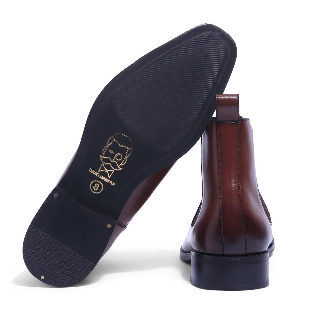 The long-awaited Lusso Boot collection is finally here. Unveiling "Jonas", a timeless classic Chelsea boot featuring a modern square-toe silhouette, crafted with the same, familiar artisanship synonymous with Lusso. The Jonas is created from our rich British Tan finish on the upper offering a refined look that stands out in any setting. These boots are the definition of versatile, pairing seamlessly with everything from tailored suits to formals, making them a staple for any fashion-forward wardrobe.