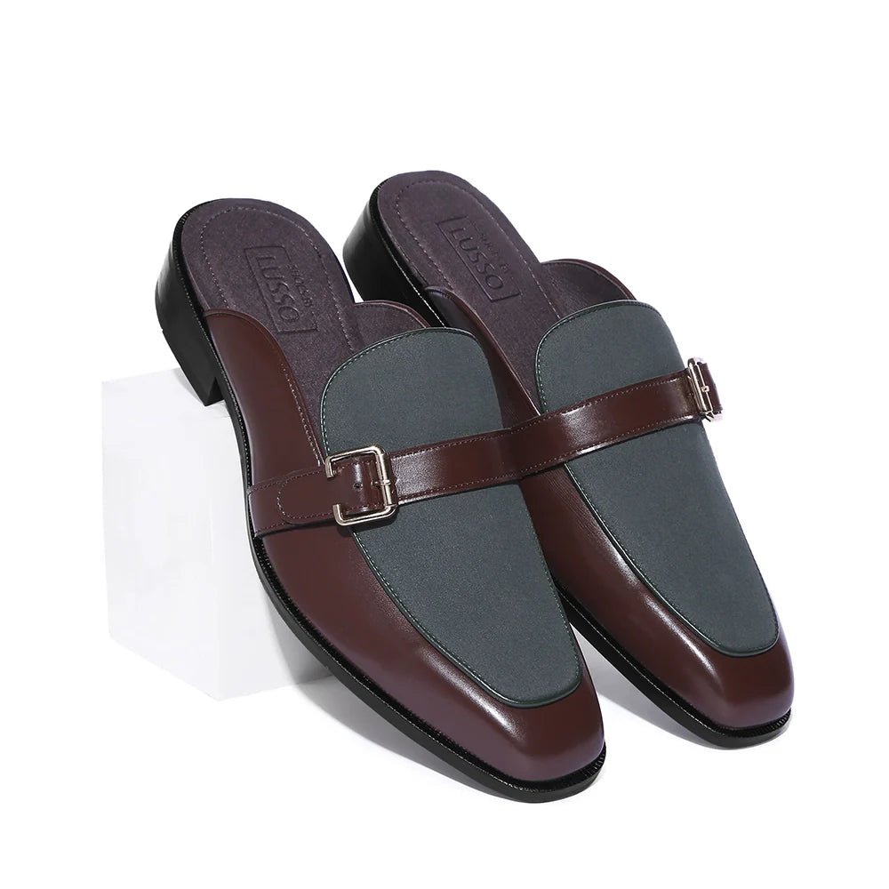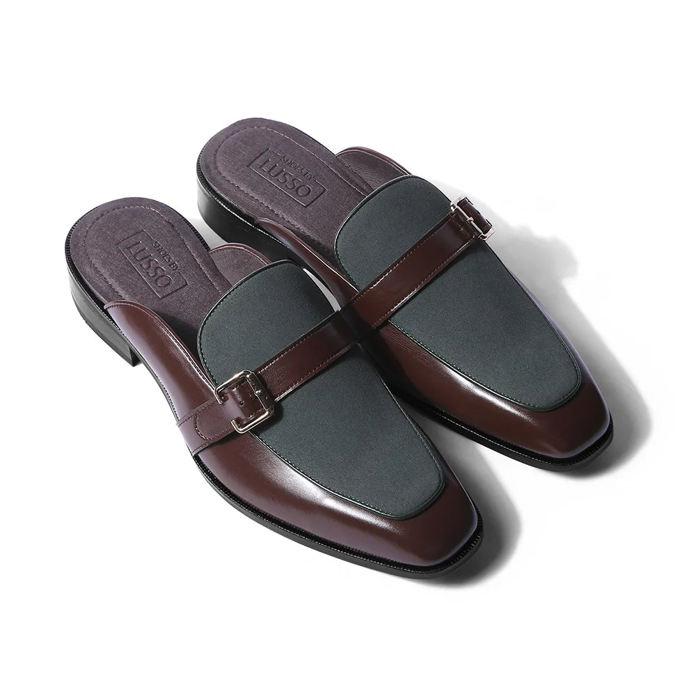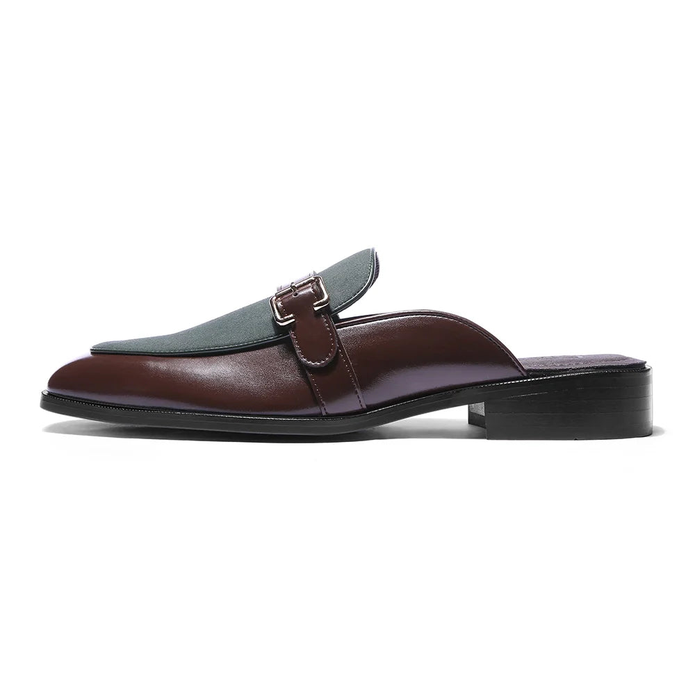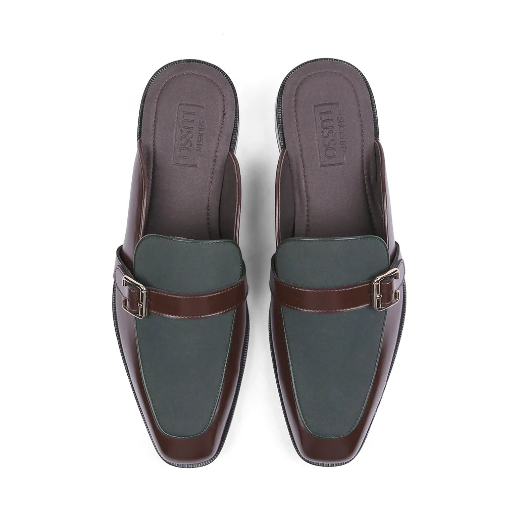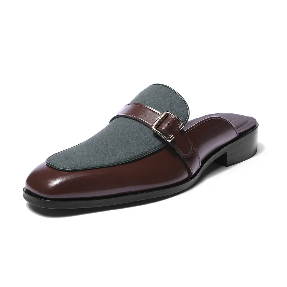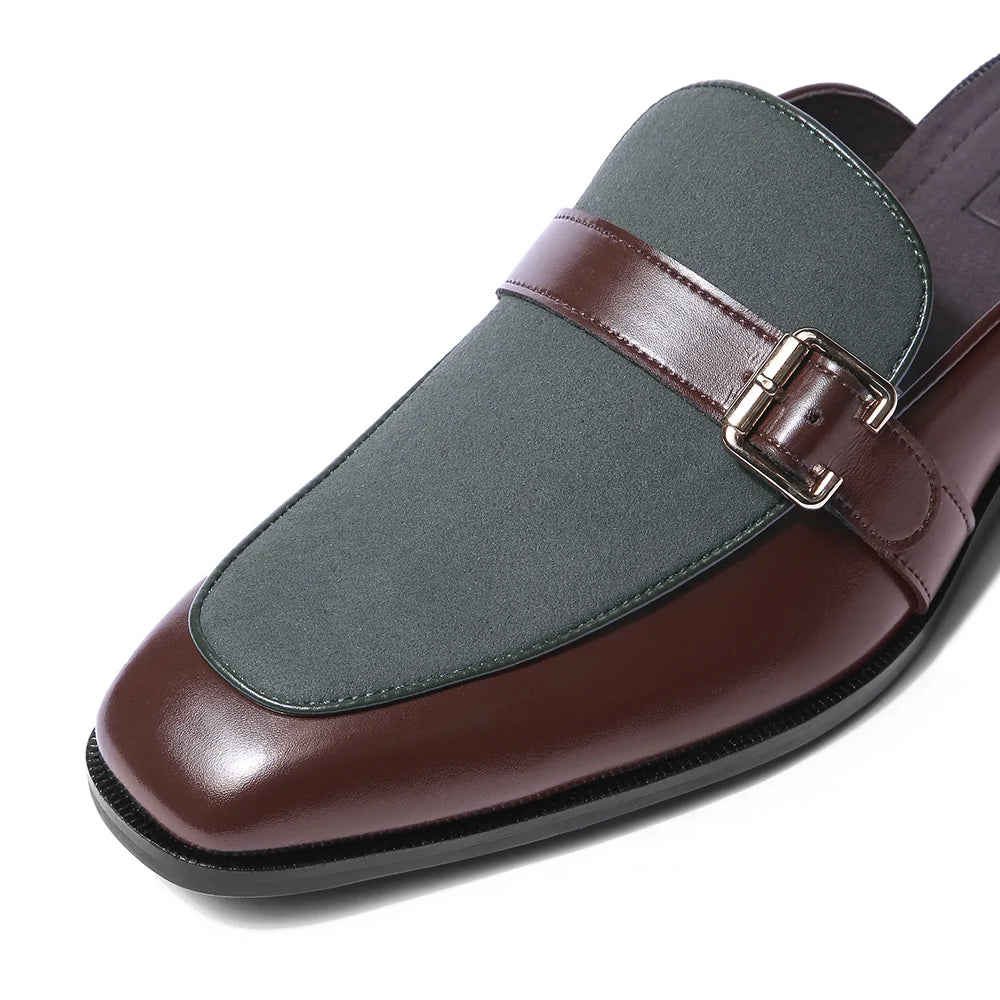 Marlen is designed to stand out, but quietly. Bold in structure, rich in finish, and confident in detail. The soft brown suede body brings depth and texture, while black trims add polish and clarity. A gold buckle elevates the mules from simple to statement.