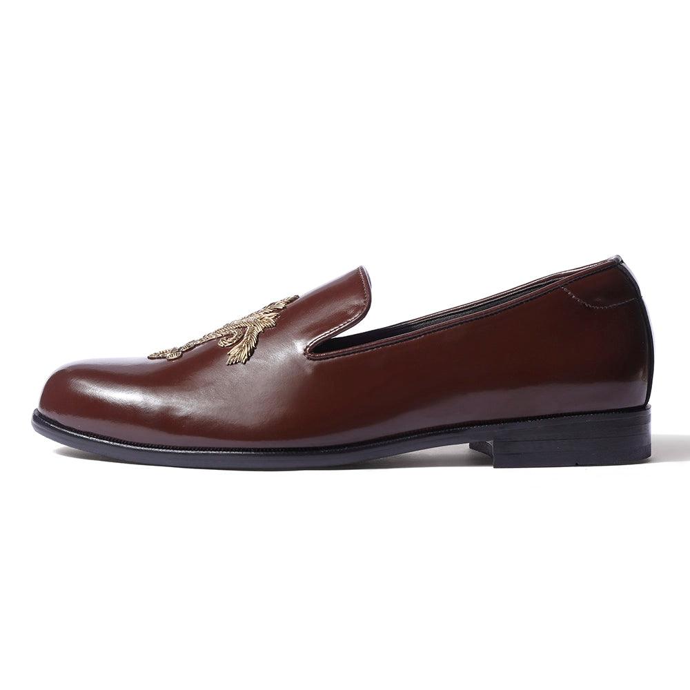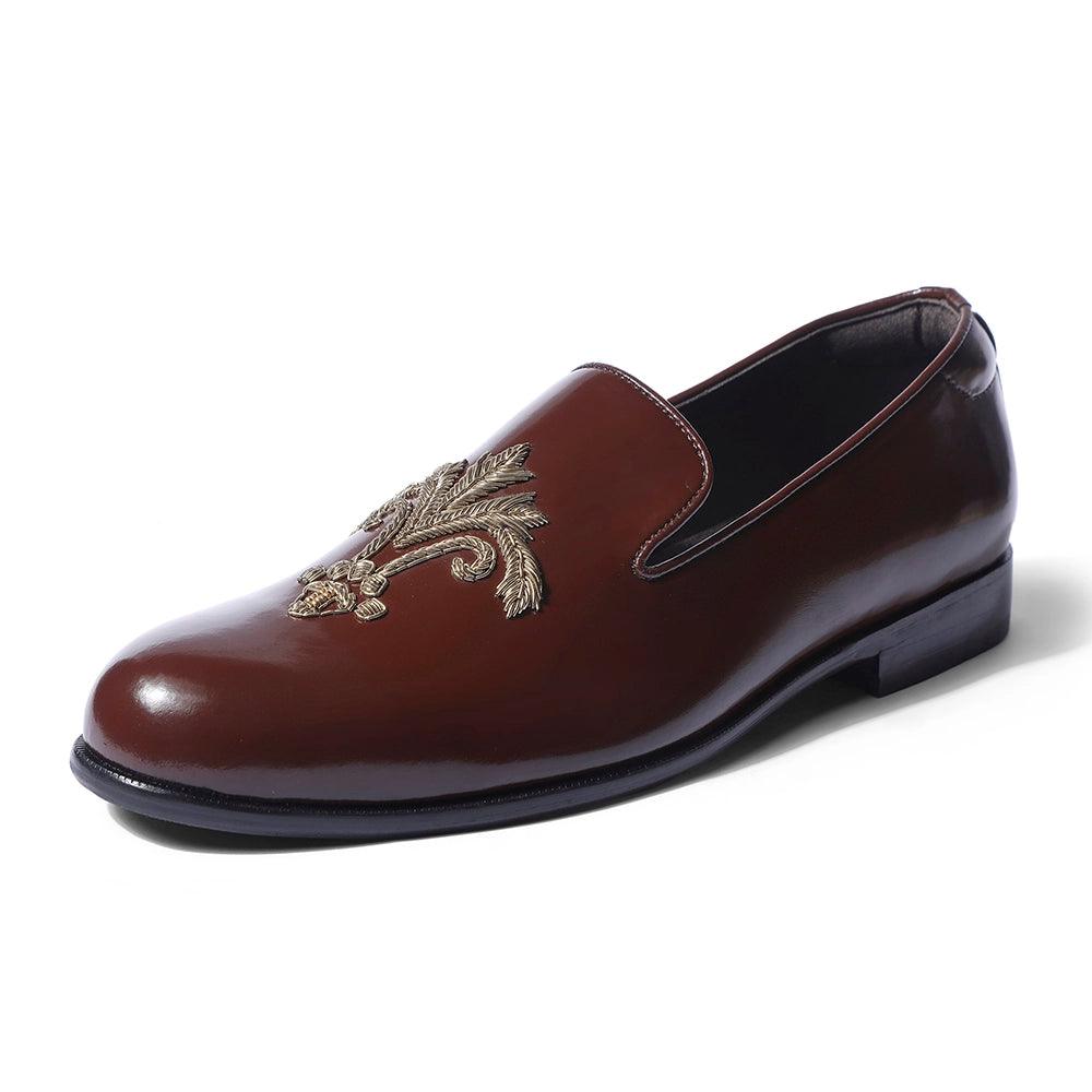 The "Samurai" is a pair that will fill you with pride and poise. Crafted in our beautiful dark tan upper, these pair of slip-on loafers are a true harmony between grace and splendour. This beautiful vegan slip-on is handcrafted with intricate zardozi work in golden. Truly awe-inspiring.