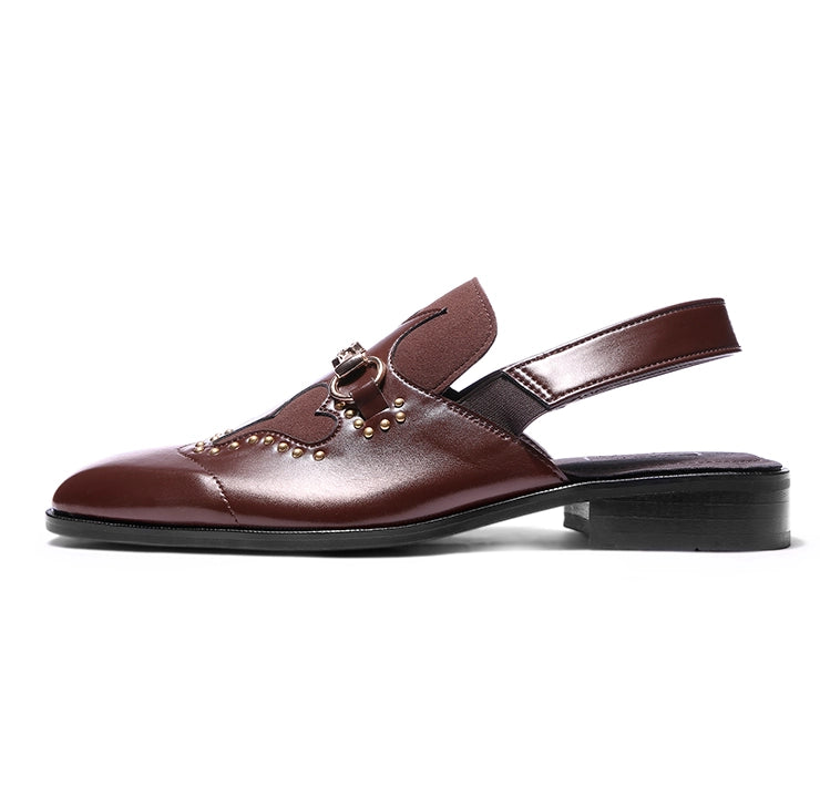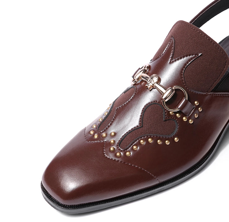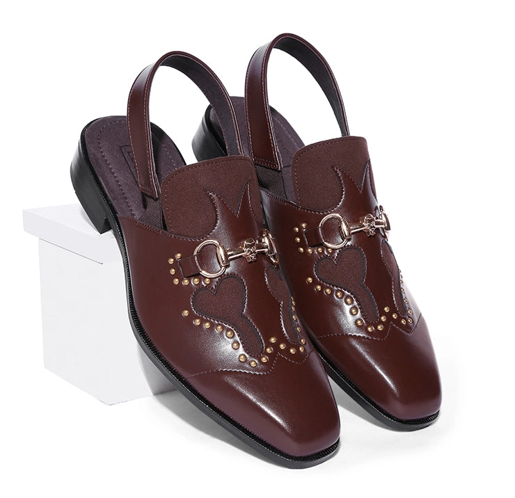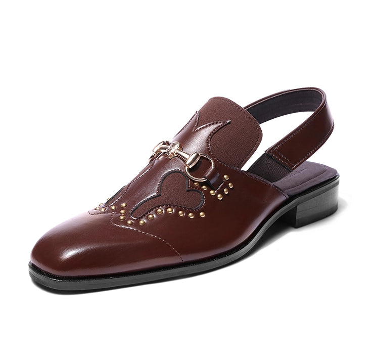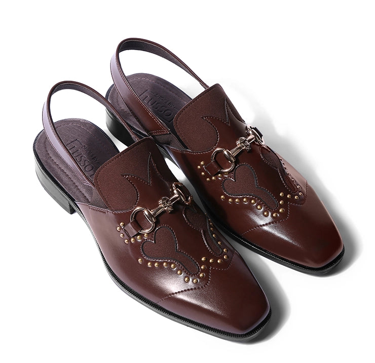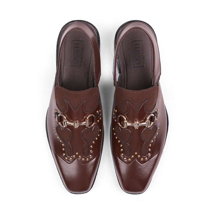 Elephants have long been a significant part of our heritage. And “Reva” was brought to life to represent these magnificent beings. Calm, Strong and Unmistakably Regal. The upper traces the sweep of a tusk, giving the sandal a strong, sculpted face. Each rivet is placed by hand, a nod to the meticulous metal craft that has adorned palaces and processions for centuries. And everything is tied together by our iconic Lusso Horsebit Buckle representing the royal harnesses. Crafted in Dark Tan and Brown Suede vegan materials, Reva is heritage distilled into a sharp, contemporary sandal.