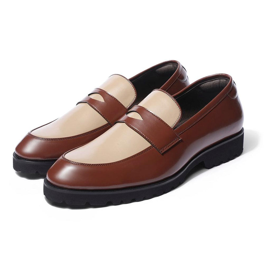 The iconic penny loafer is recreated in our chunky Featherlite silhouette. The "Brune" is crafted from our vegan british tan upper and a beige tongue to give it a regal look. Perfect for city strolls, brunches and those old Bombay vibes.