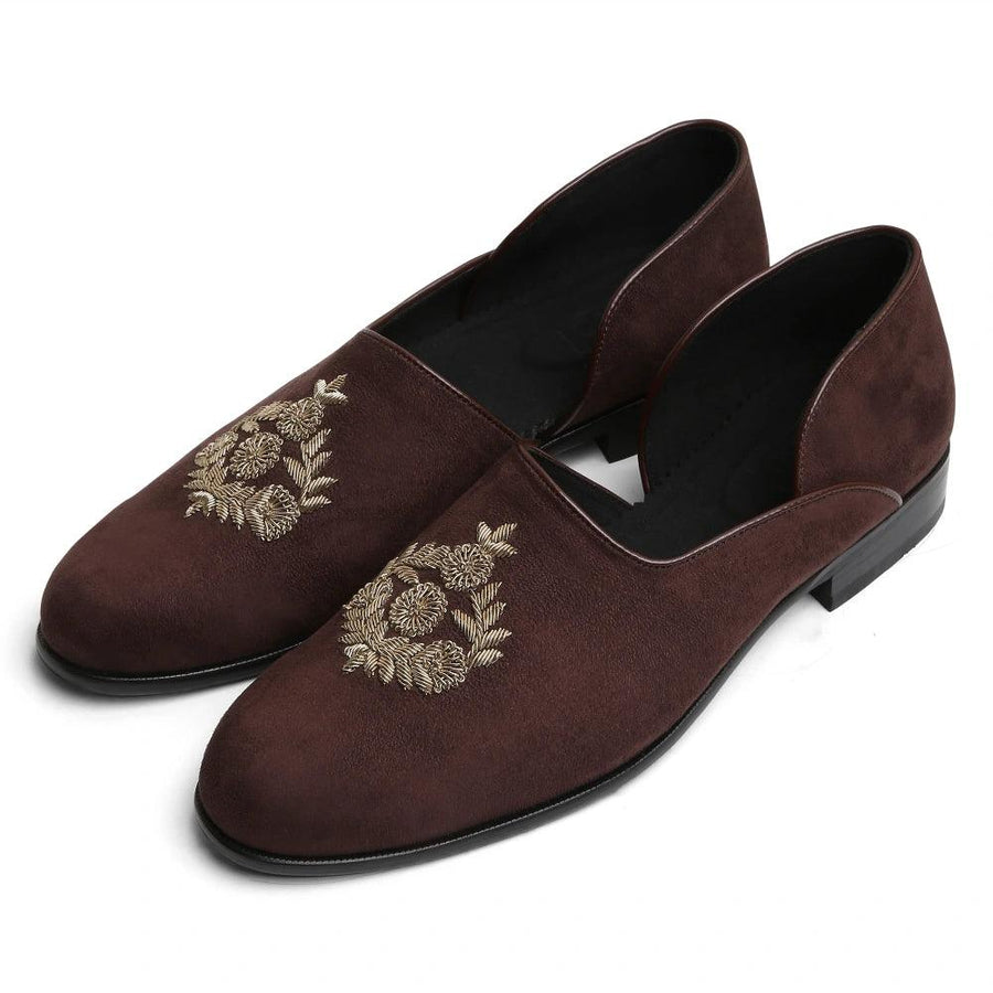 Gulzar - Brown Suede Zardozi Slip-Ons