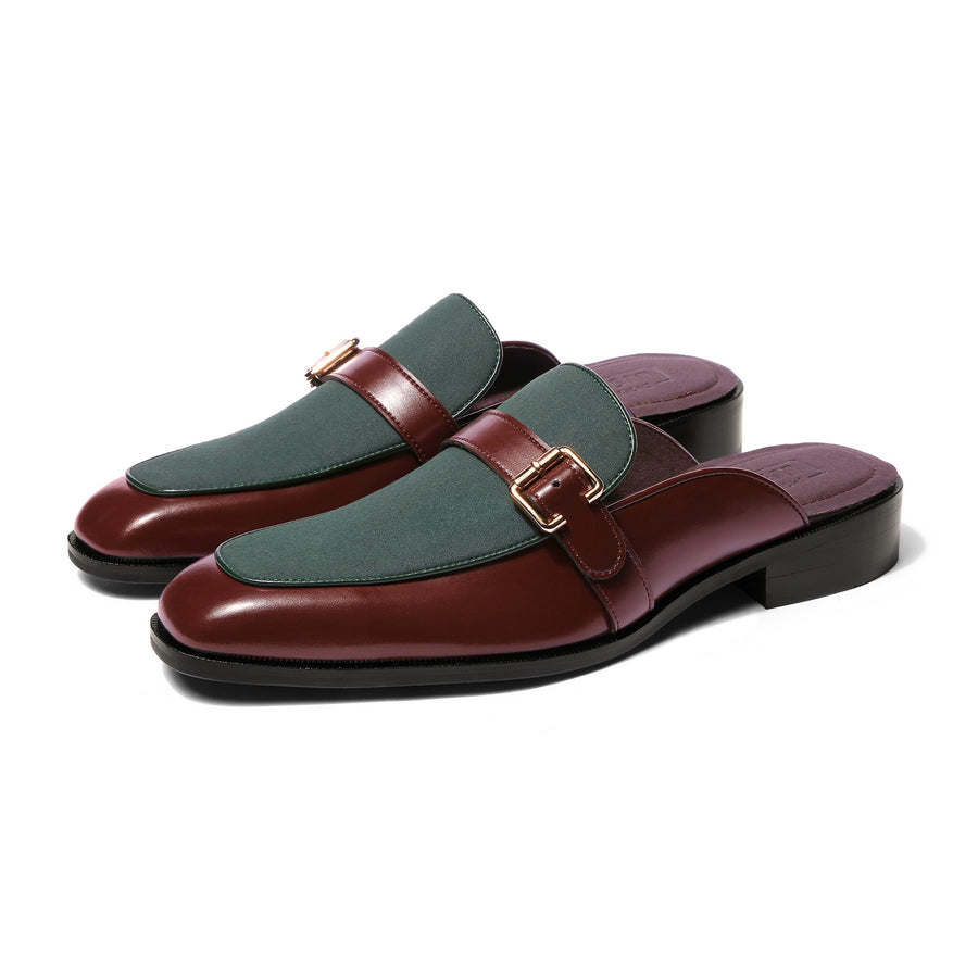 Marlen is designed to stand out, but quietly. Bold in structure, rich in finish, and confident in detail. The soft brown suede body brings depth and texture, while black trims add polish and clarity. A gold buckle elevates the mules from simple to statement.
