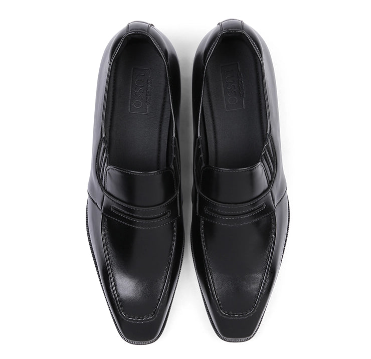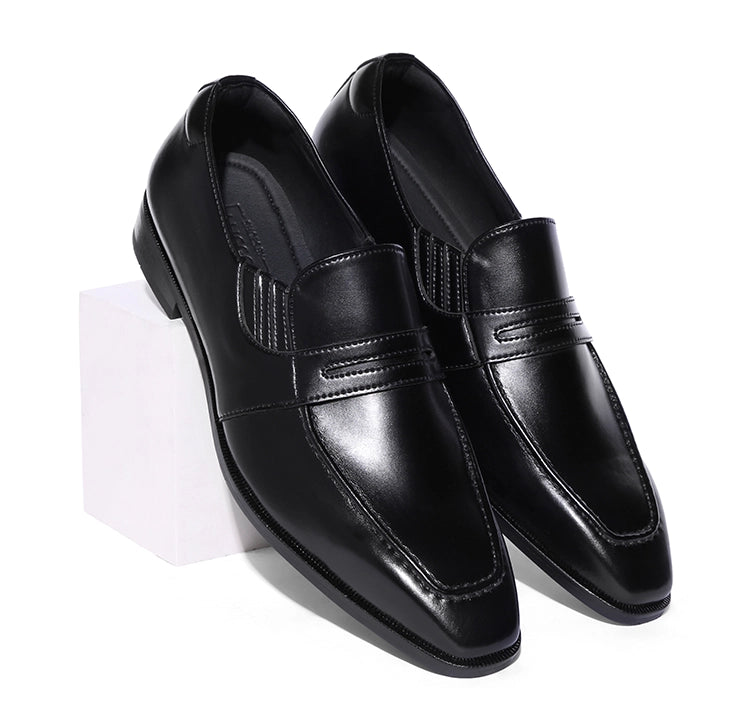 The Dayton is a Lazyman loafer that bridges the gap between Oxford tradition and loafer convenience. Crafted in polished black vegan leather, it features elastic side gussets for effortless slip-on wear, while keeping a structured, formal silhouette. A shoe that delivers boardroom authority with everyday practicality.