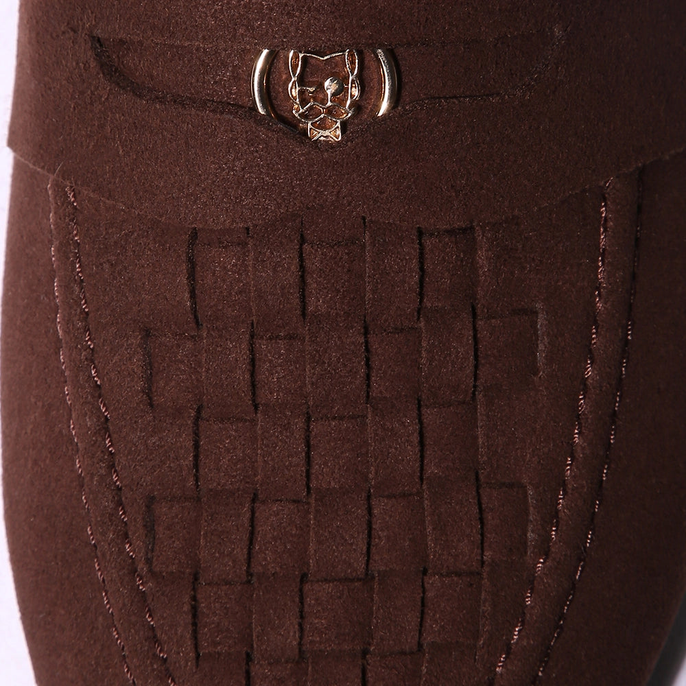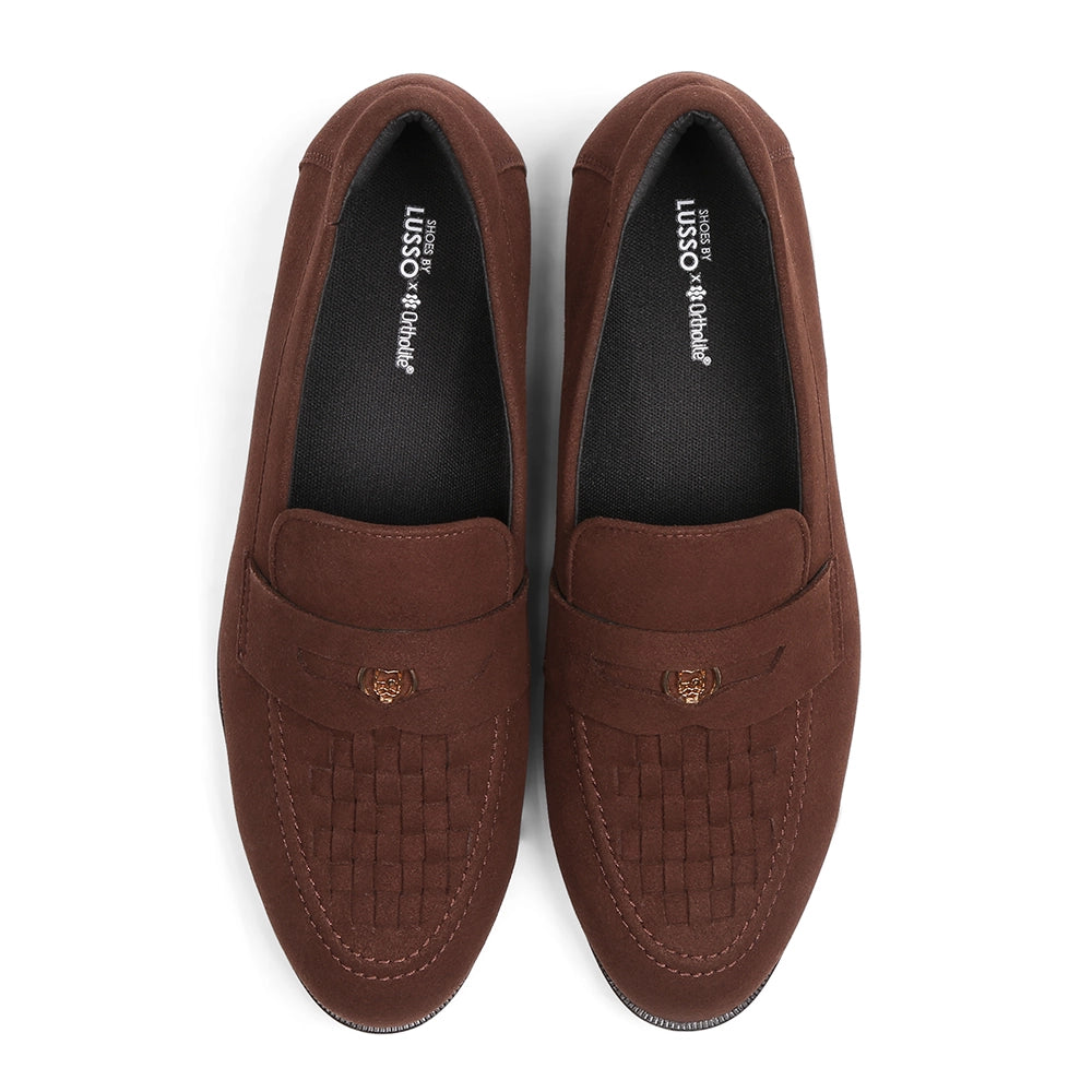 The Luigi carries a refined ease that feels right at home anywhere, from casual Fridays to late-night dinners. Crafted in soft brown vegan suede, it features a hand-woven vamp that adds depth and detail to its otherwise clean design. The gold Lusso emblem on the strap gives it a quiet touch of luxury without overstatement. Light, flexible, and built for comfort, Luigi is that rare loafer that’s as relaxed as it is polished, the kind you’ll keep reaching for.
