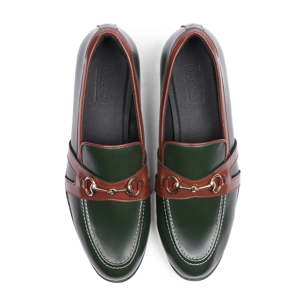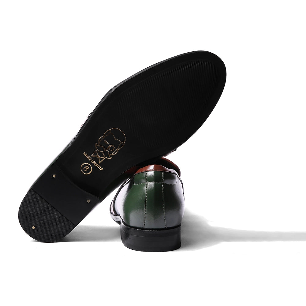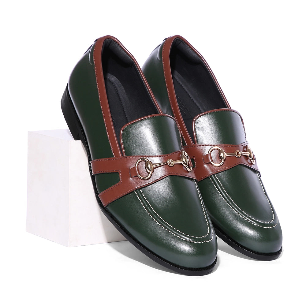 Rivio is crafted to stand apart, a loafer that thrives on bold contrast and confident detail. The bottle-green vegan leather is brought to life with British tan trims, creating a sophisticated dual-colour design that instantly elevates any outfit. Its polished golden horsebit draws the eye, adding a layer of sharp refinement without overpowering the form.