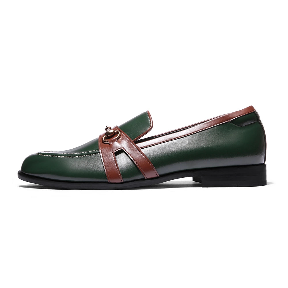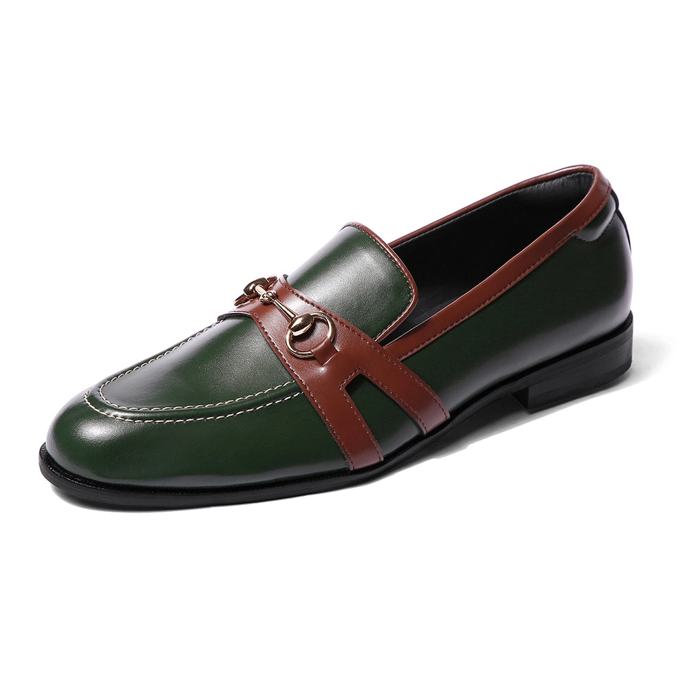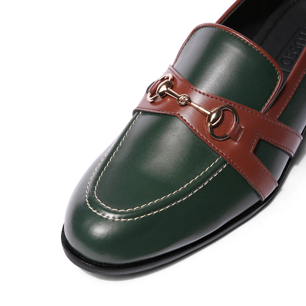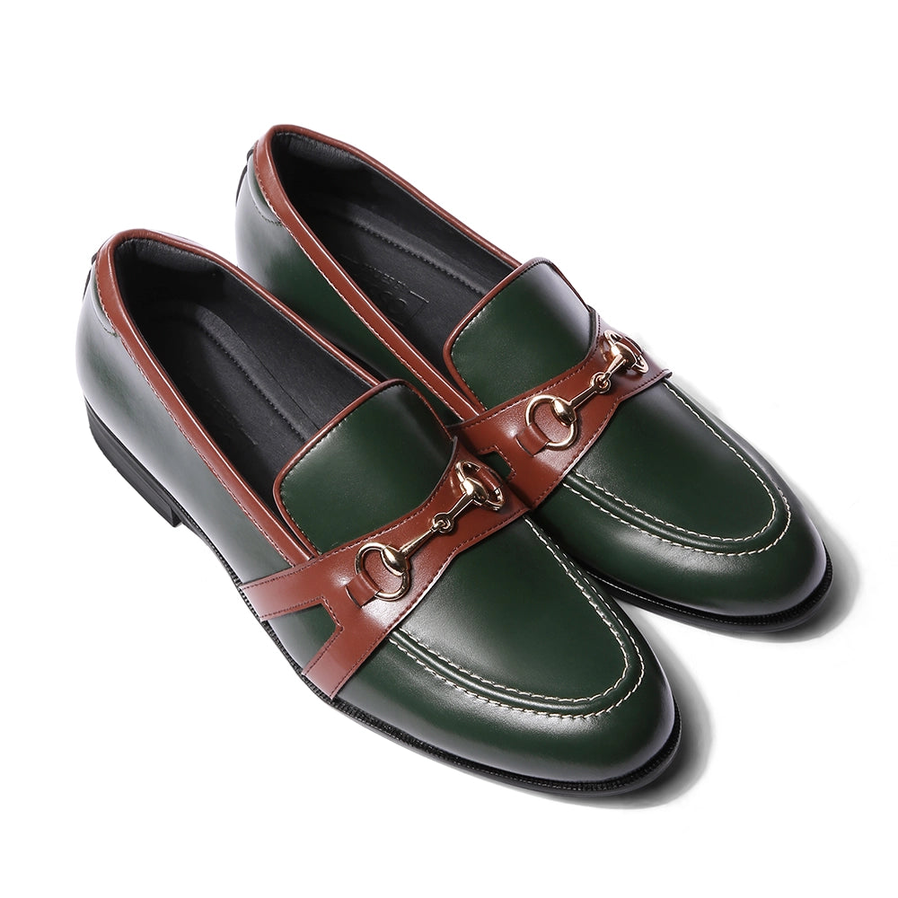 Rivio is crafted to stand apart, a loafer that thrives on bold contrast and confident detail. The bottle-green vegan leather is brought to life with British tan trims, creating a sophisticated dual-colour design that instantly elevates any outfit. Its polished golden horsebit draws the eye, adding a layer of sharp refinement without overpowering the form.