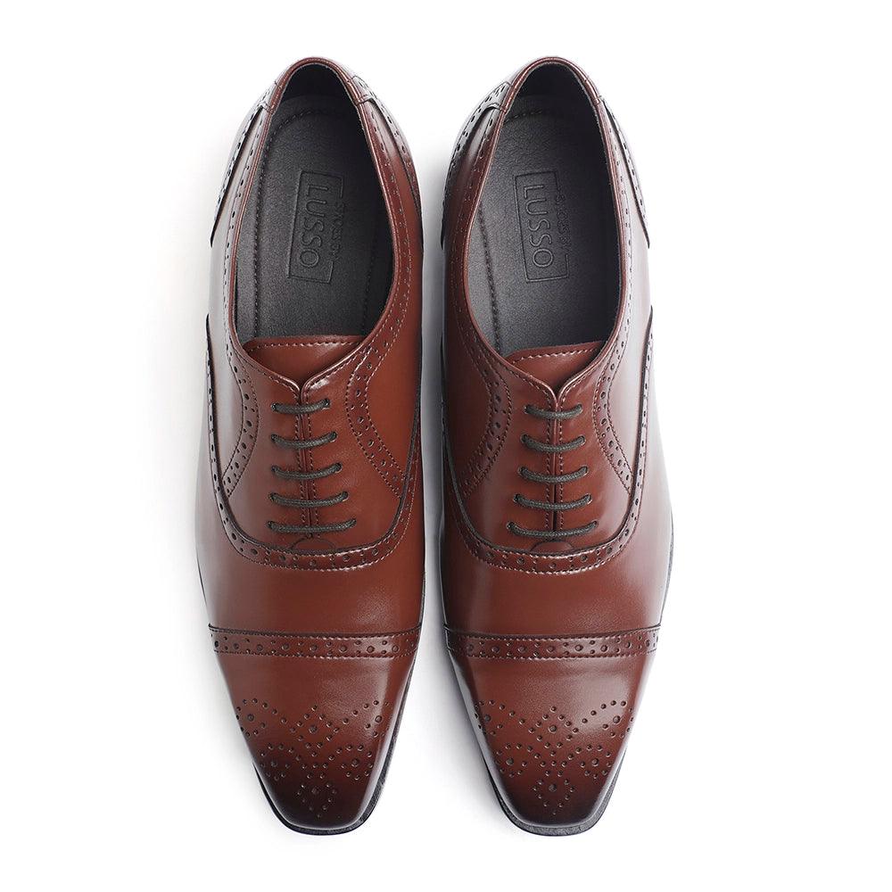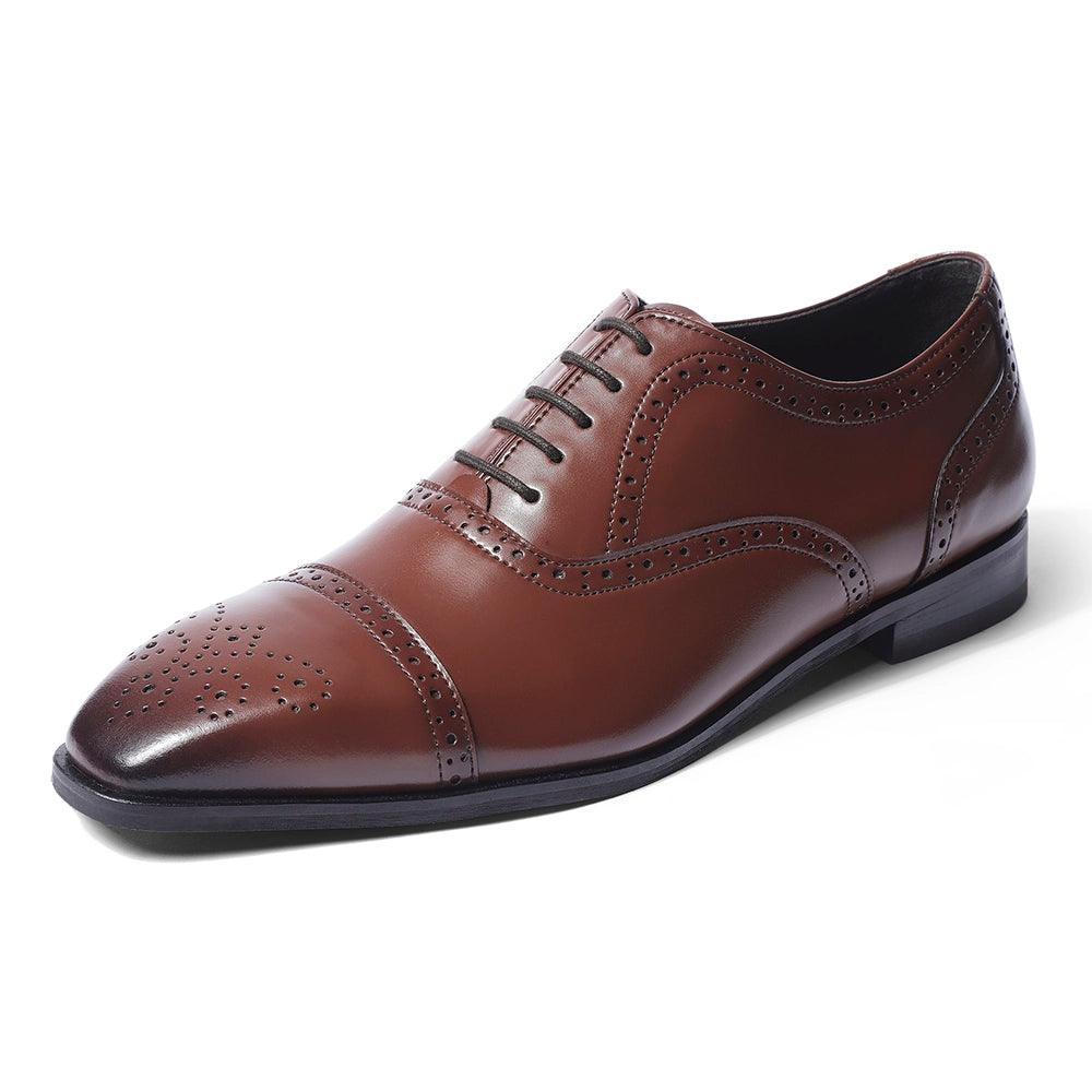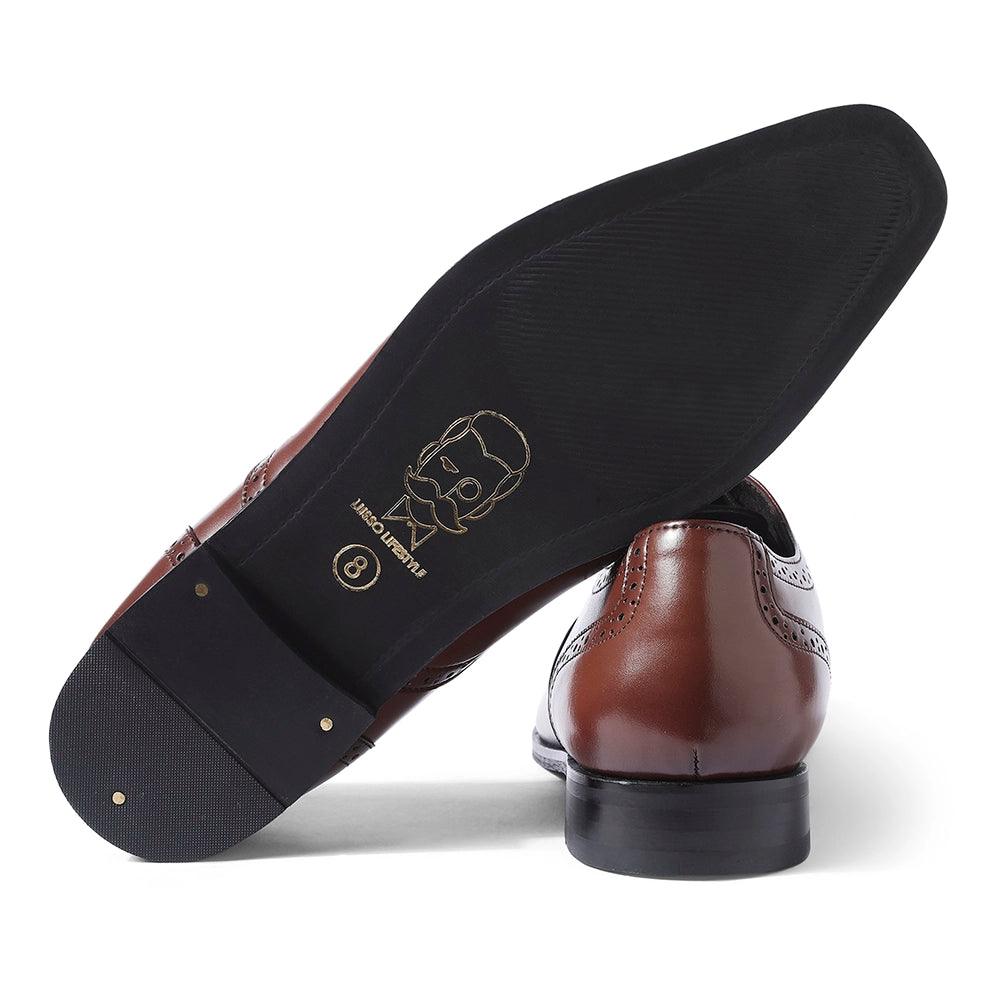 Confidence and Brilliance inspired us to create this irresistibly good-looking pair of oxfords. The "Merlin" is definitely not just a pair of shoes, a classy british tan upper is beautifully ornated with brogues on the toe and the contours of the square toe silhouette. You won't be able to take your eyes off of these, we know we can't.