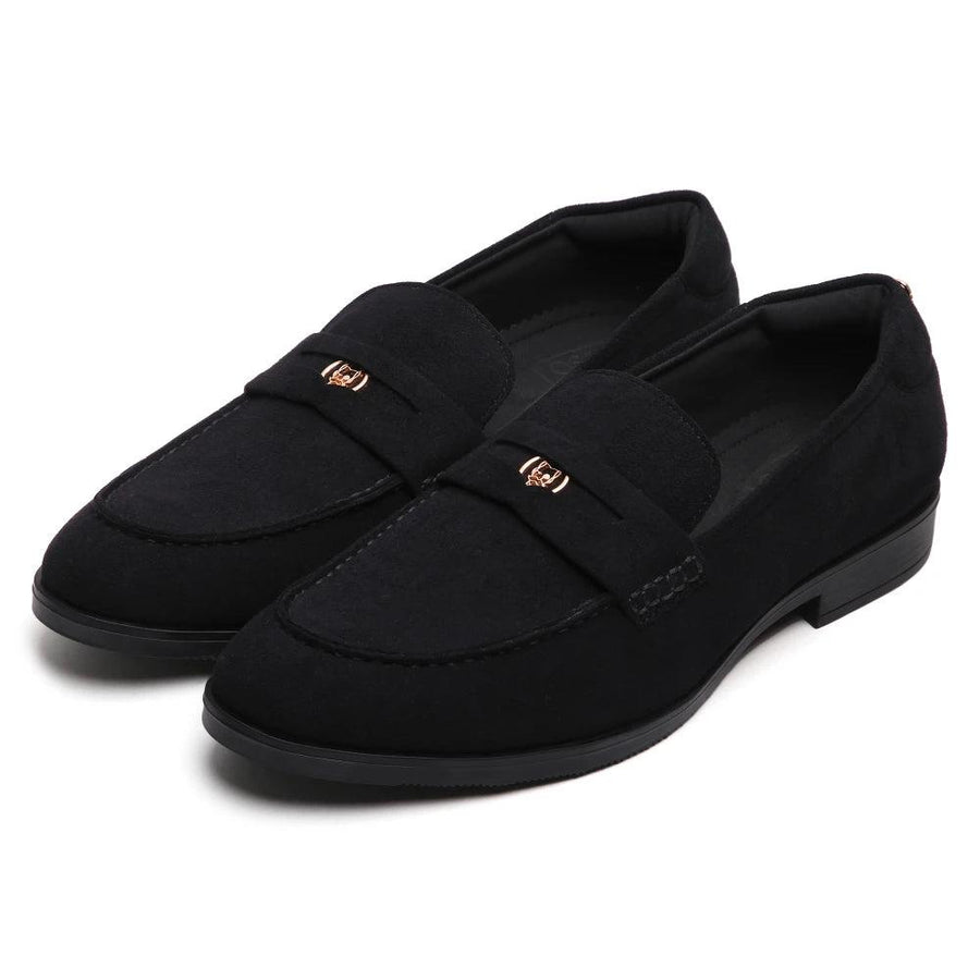 Step into timeless elegance with the Elbono-Signature Penny Slip-Ons. Part of our exclusive Signature Collection, these Shoes by Lusso combine a modern twist with classic sophistication. This pair is crafted from our classy black suede upper and is elevated by our signature Lusso ornament. Take your style to new heights with the quintessential footwear every gentleman needs.