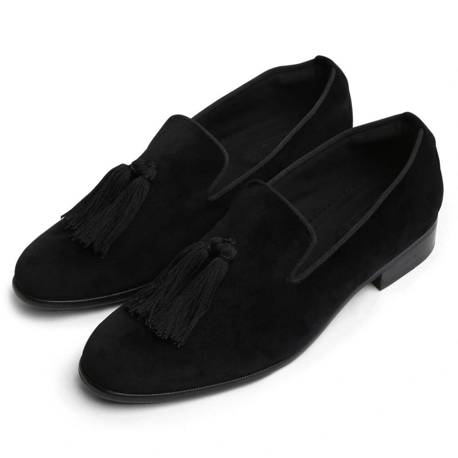 Meet "The Joma," a shoe that embodies simple elegance and ethical luxury. Its design is inspired by the timeless sophistication of a classic tassel, where style meets simplicity. The Joma features a plush black velvet upper, complemented by a distinctive, oversized tassel, adding a touch of flair. Perfect for the modern man who appreciates understated luxury, this slip-on shoe combines comfort with a conscientious choice for the environment. It's not just a shoe, it's a statement of refined taste and sustainable fashion, ideal for any occasion that calls for a touch of class.