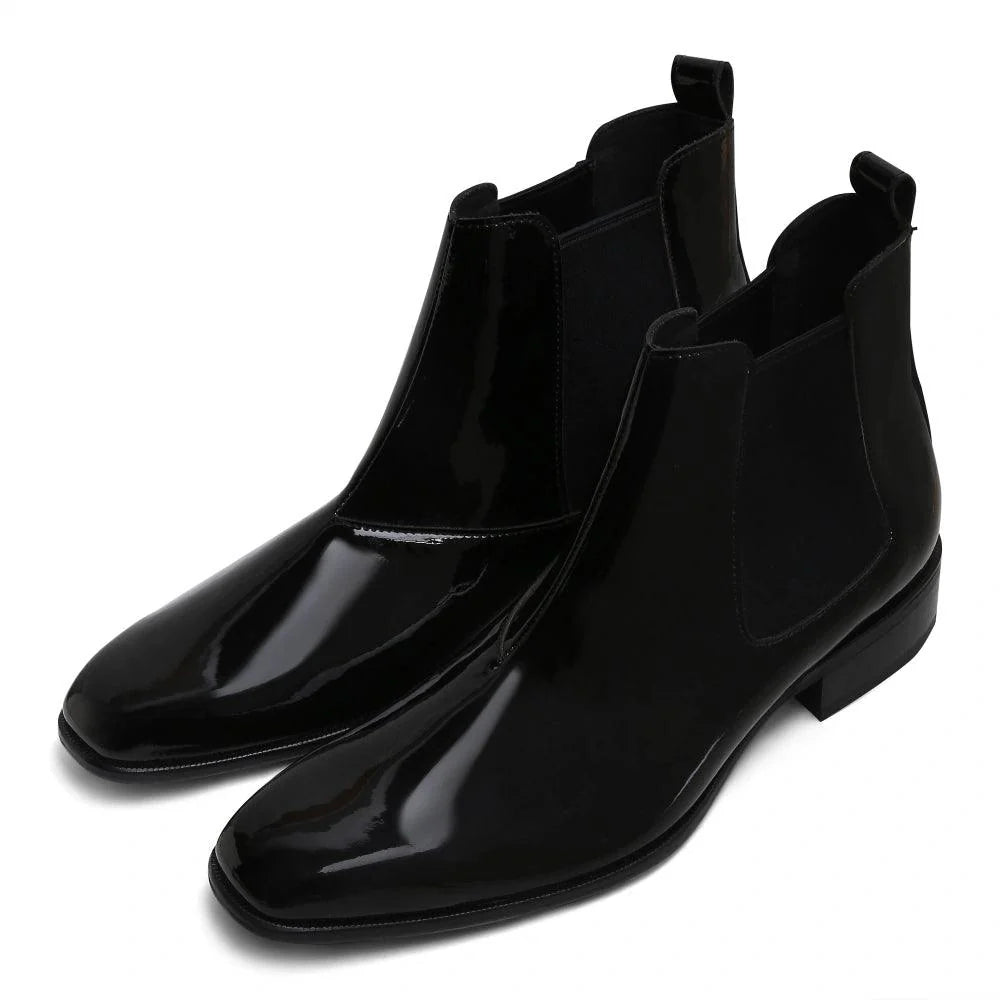 The long-awaited Lusso Boot collection is finally here. Unveiling "Martel", a timeless classic Chelsea boot featuring a modern square-toe silhouette, crafted with the same, familiar artisanship you associate with Lusso. The Martel is created from an irresistible patent black finish on the upper offering a polished look that stands out in any setting. These boots are the definition of versatile, pairing seamlessly with everything from tailored suits to tuxedos or western formals, making them a staple for any fashion-forward wardrobe.