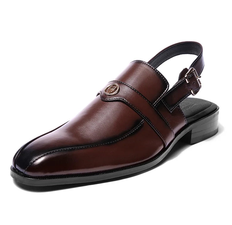 The Peshan is a modern tribute to the iconic Peshawari sandal. Crafted in rich dark tan vegan leather with a sleek sandal strap, it carries the strength of tradition while embracing the finesse of contemporary luxury. Bold, timeless, and versatile, it is built for both heritage occasions and modern statements.
