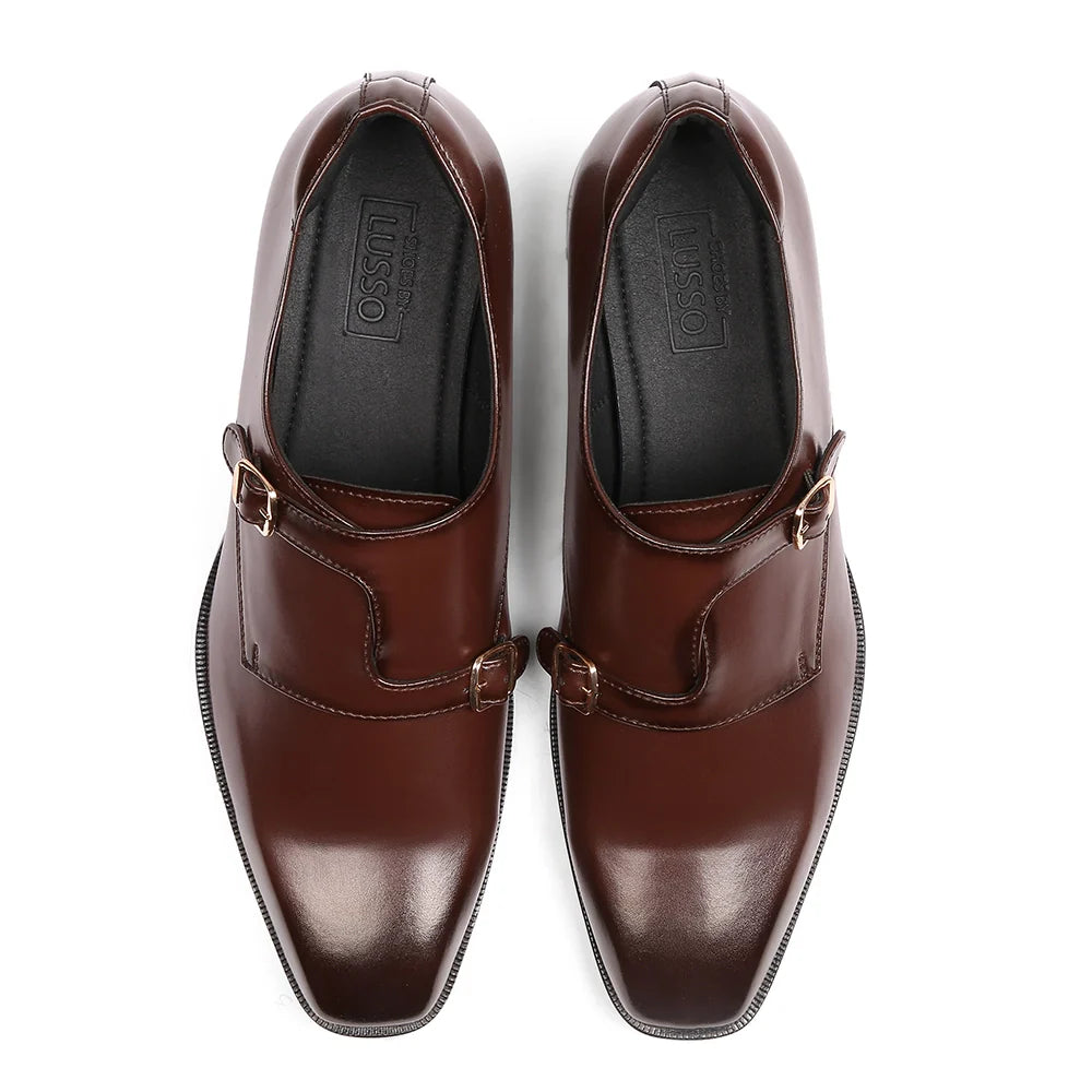 A masterclass in structure and refinement. The Vayden redefines the traditional double monk with a unique strap placement that flows cleanly across a beautiful square toe silhouette. Hand-crafted in dark tan vegan leather with a soft burnished finish, it delivers confidence through precision, every line purposeful, every buckle deliberate. Designed for the modern gentleman who values the finer things, Vayden transitions effortlessly from tailored suits to elevated casuals.