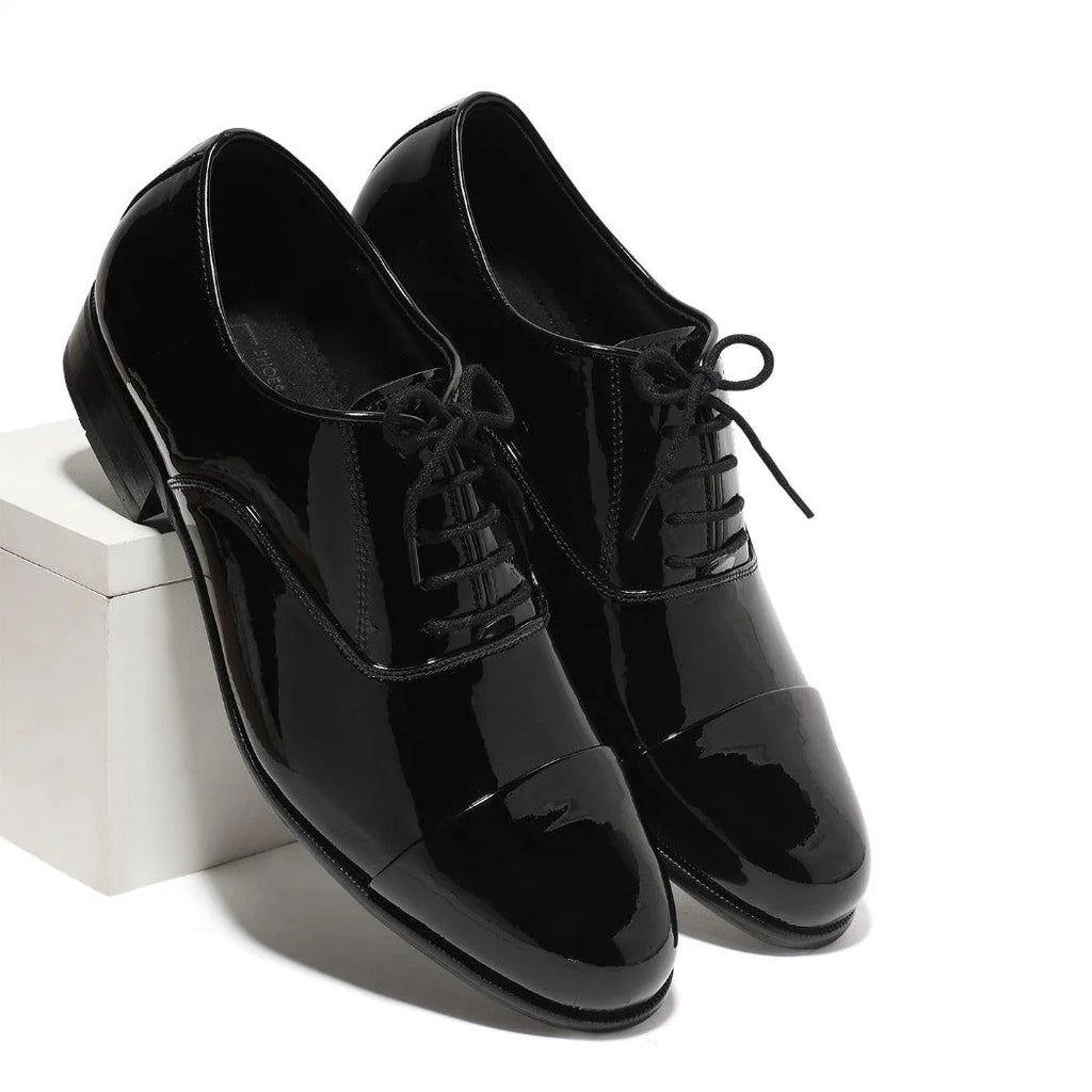 True craftsmanship and classy design, a show-stopping combination. The Aristo Black Patent Lace Up is handcrafted with immense refinement. An elegant full patent design in a lace-up, a true classic. Pair this shoe with any of your formal outfits or a black tie event to complete the look.