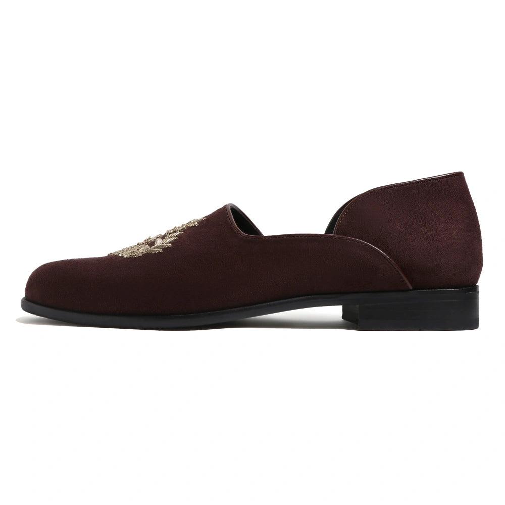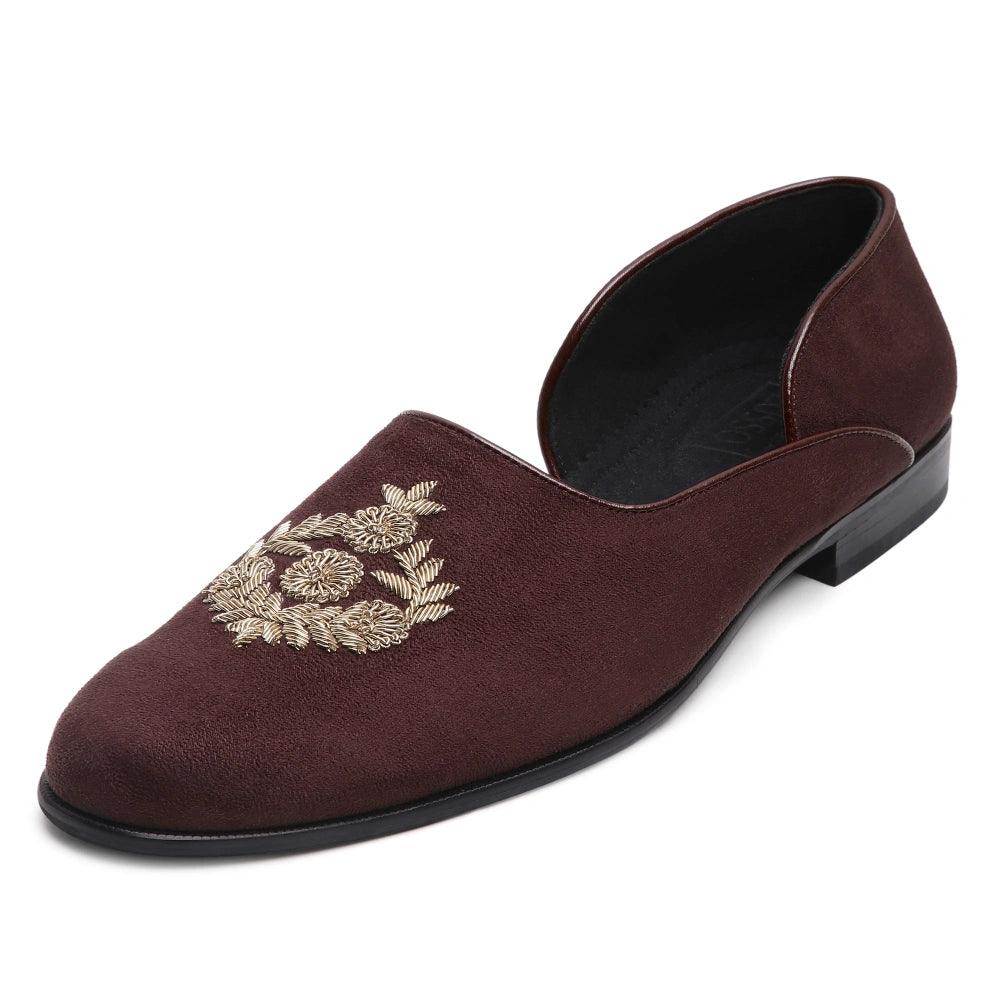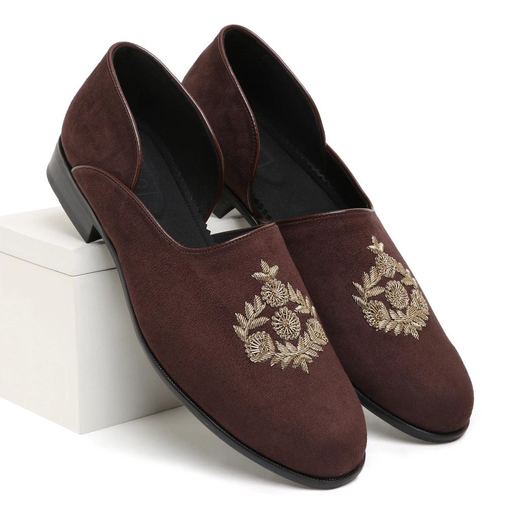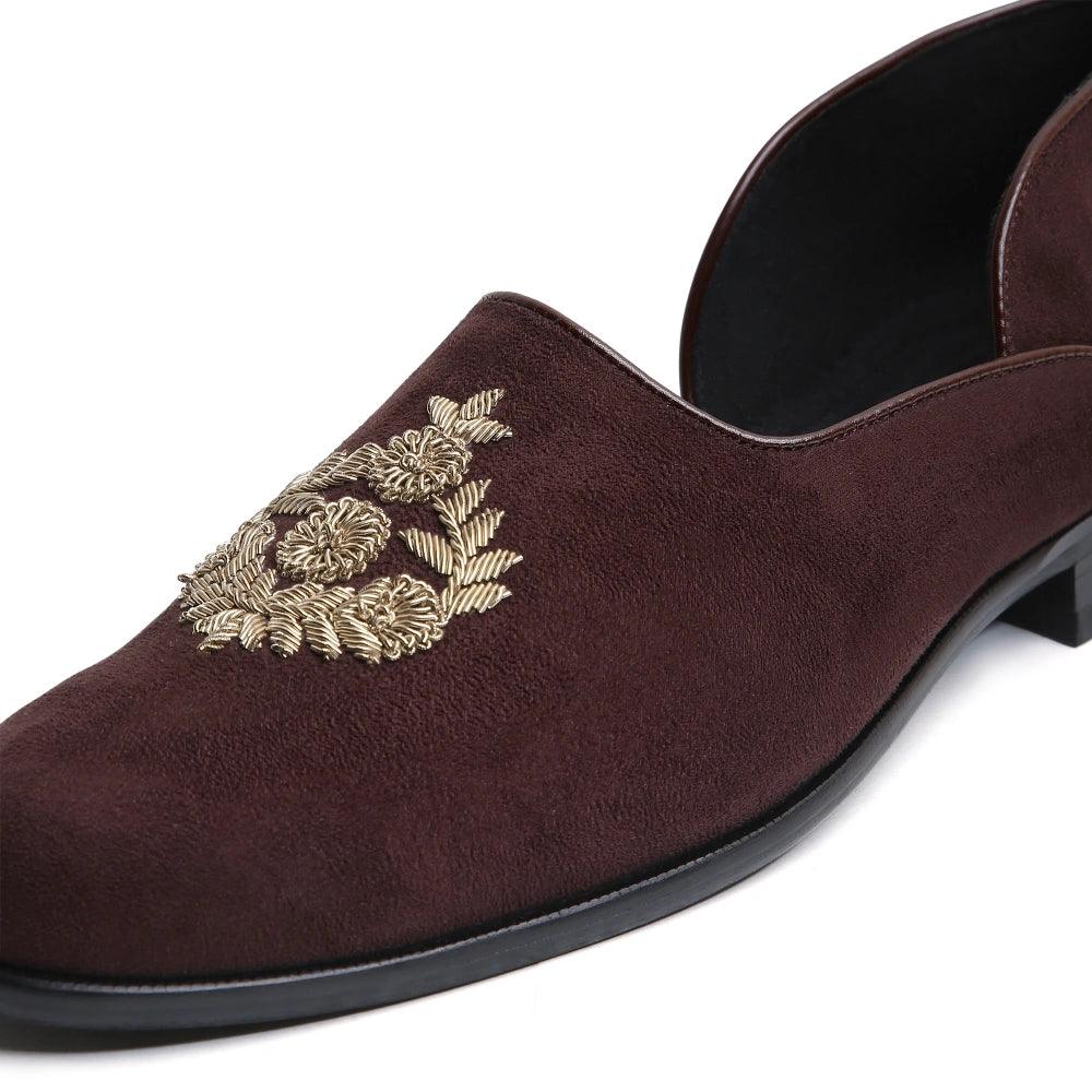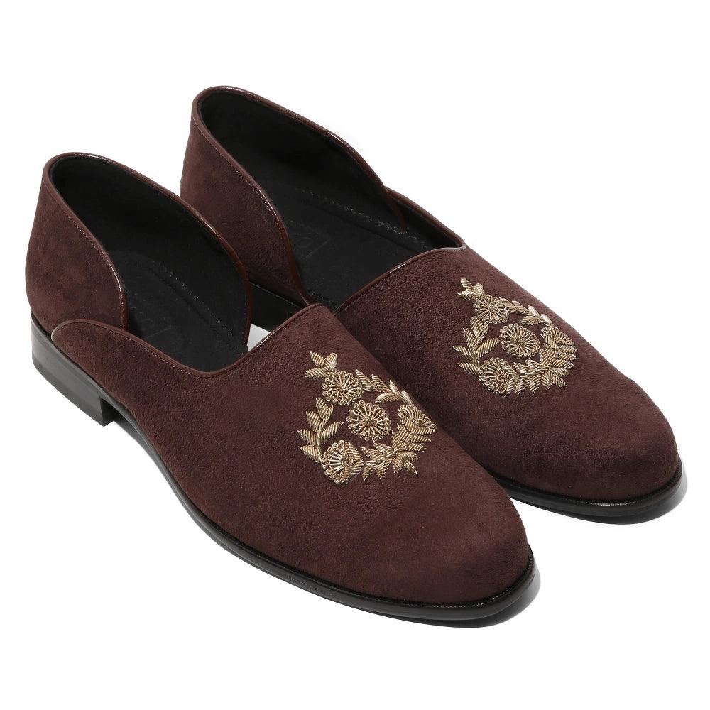 Gulzar - Brown Suede Zardozi Slip-Ons-RTS