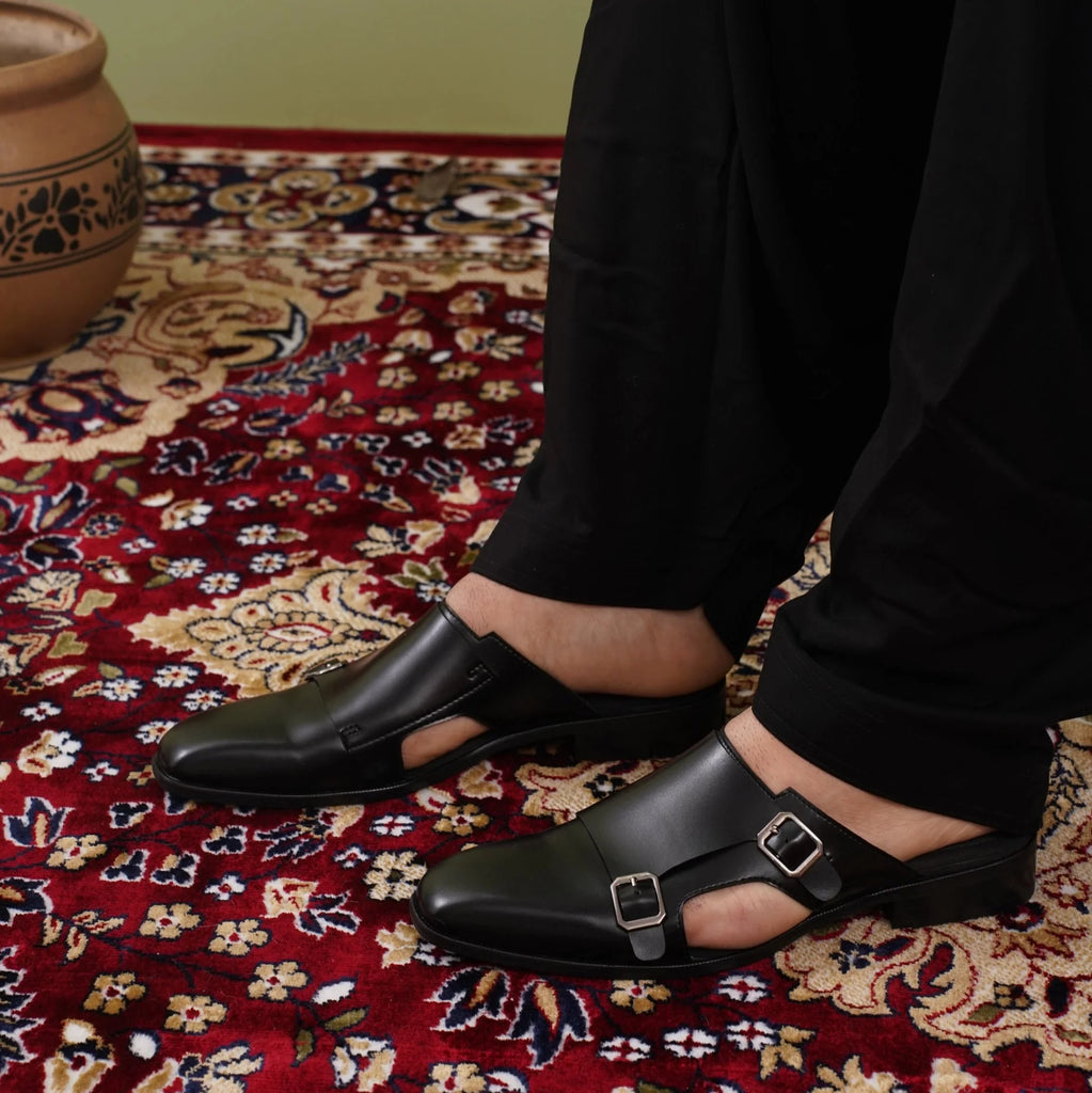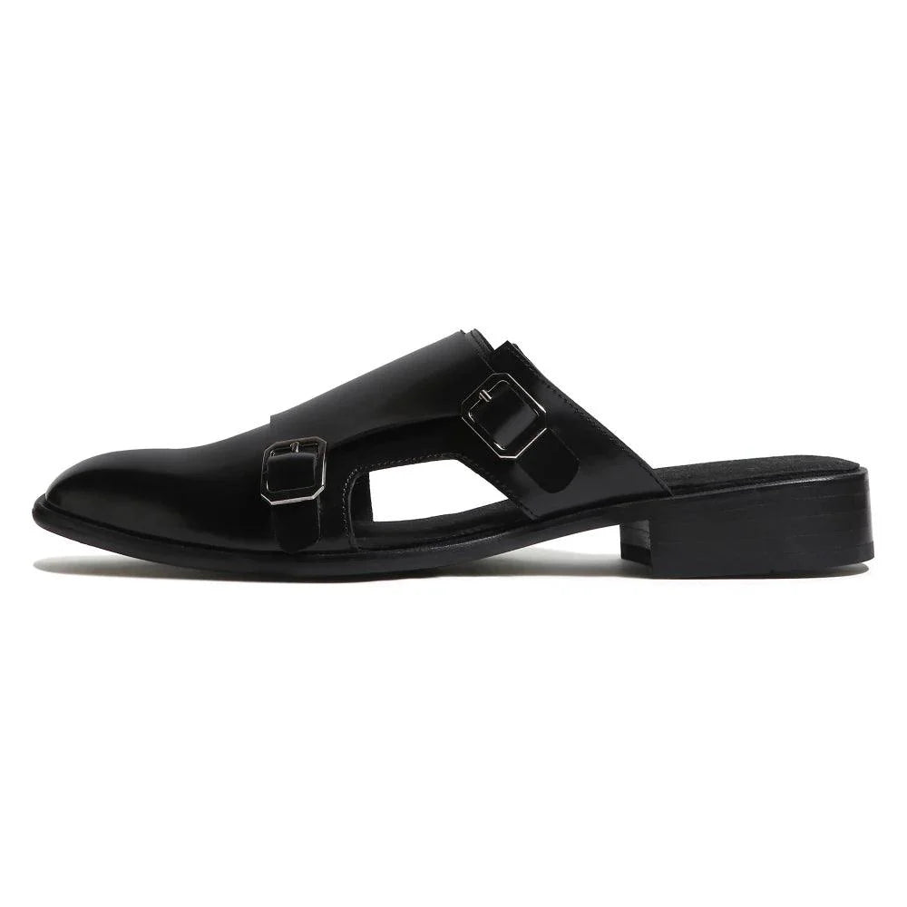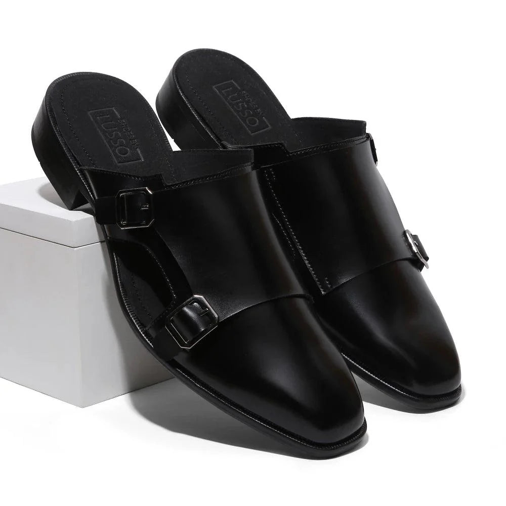 Introducing "The Hulio", the perfect blend of classic and contemporary. These plush black mules feature a clean double monk strap design with a square toe for a sharp, urban look. Ideal for dressing up or down, they slide on effortlessly to complement any outfit.