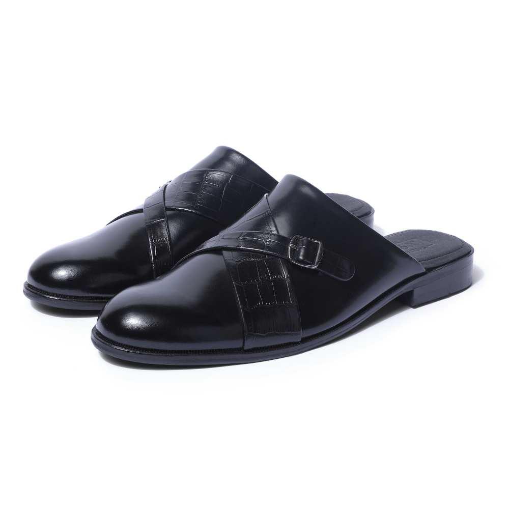 The "Mason" single monk mule is a standout piece that combines the ease of a slip-on with the sophistication of a classic monk shoe. The Black upper, with its subtle black shading, offers depth and character, while the single buckle adds a touch of traditional style. This mule is a versatile choice that pairs well with both casual and semi-formal attire.