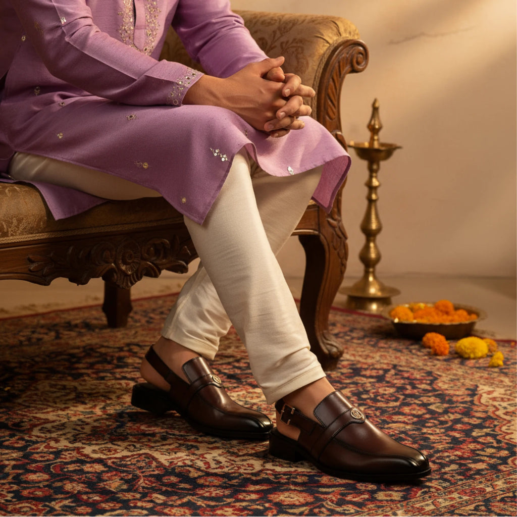 The Peshan is a modern tribute to the iconic Peshawari sandal. Crafted in rich dark tan vegan leather with a sleek sandal strap, it carries the strength of tradition while embracing the finesse of contemporary luxury. Bold, timeless, and versatile, it is built for both heritage occasions and modern statements.