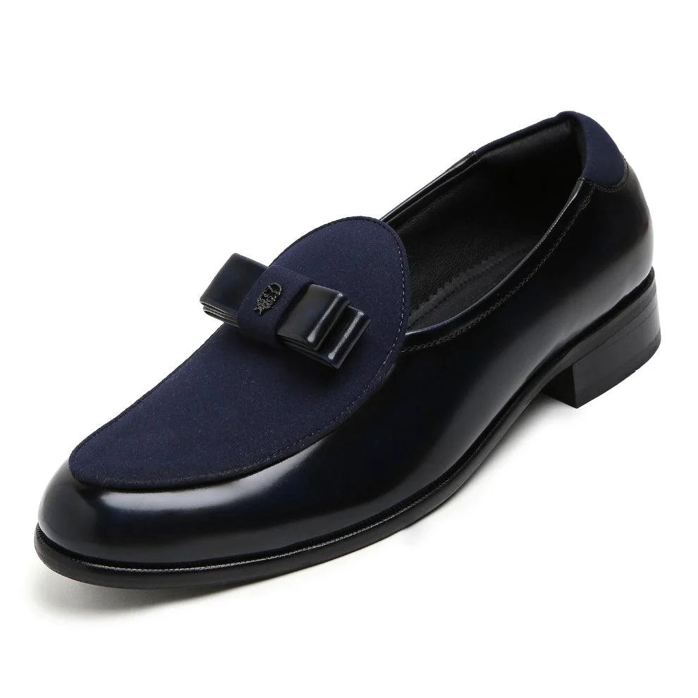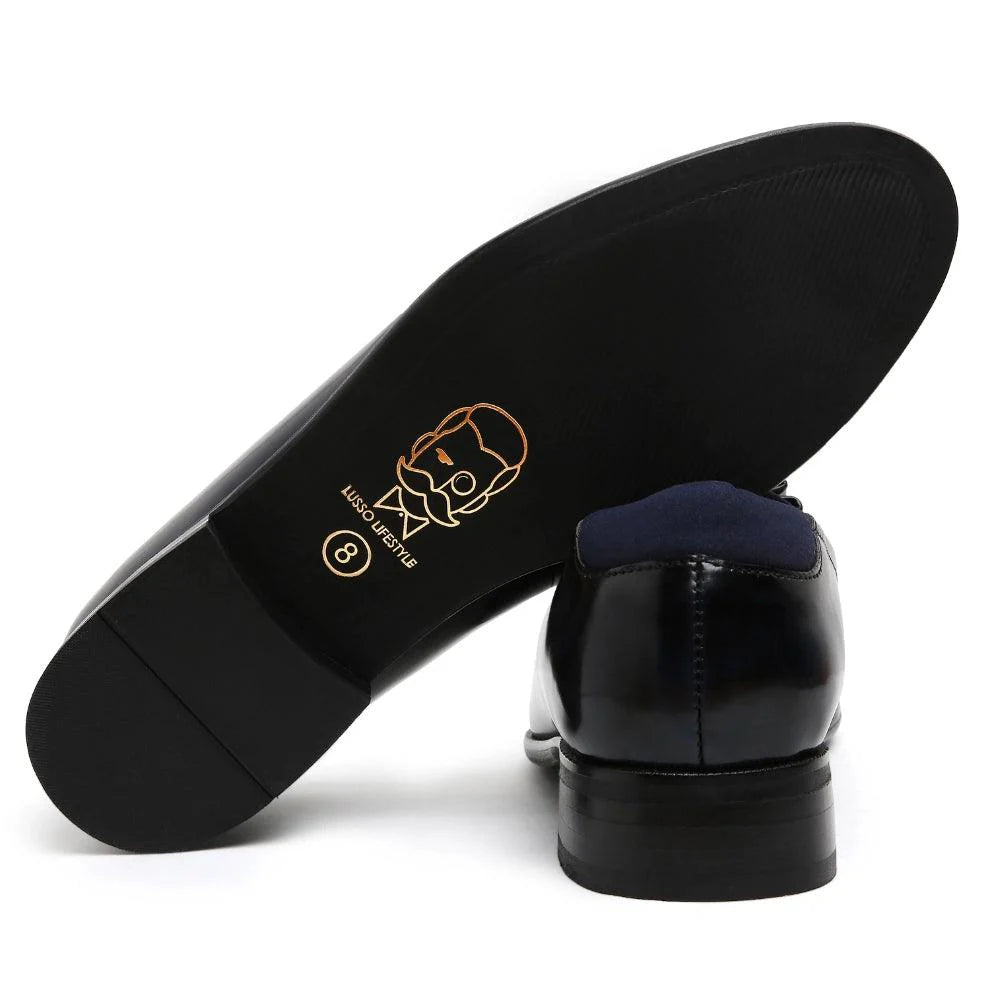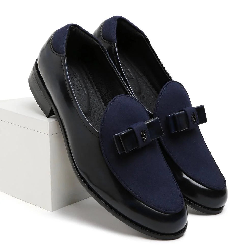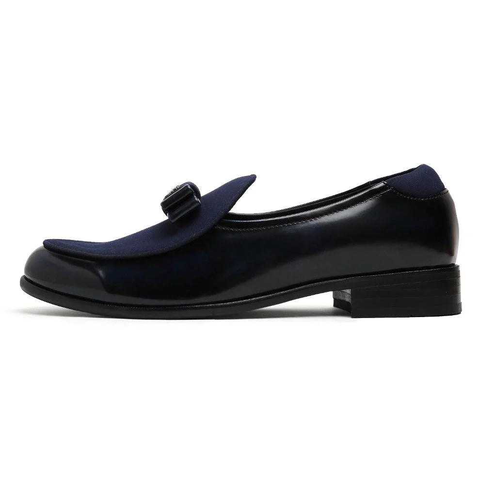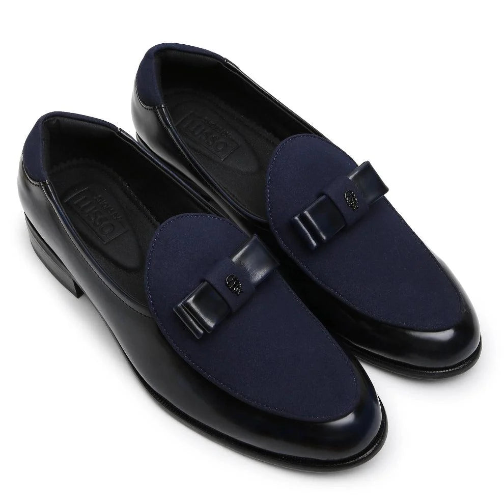 Presenting our signature tuxedo slip-on in a classy new colourway. Get ready for your next black tie event in our Navy Blue tuxedo slip-ons. Sleek and stylish, this shoe features a premium suede feel, a navy blue upper and the iconic tuxedo design for a sophisticated look. Easy to wear and comfortable for all-day, they are the perfect addition to your formal wear collection. Order now for a timeless and stylish option.