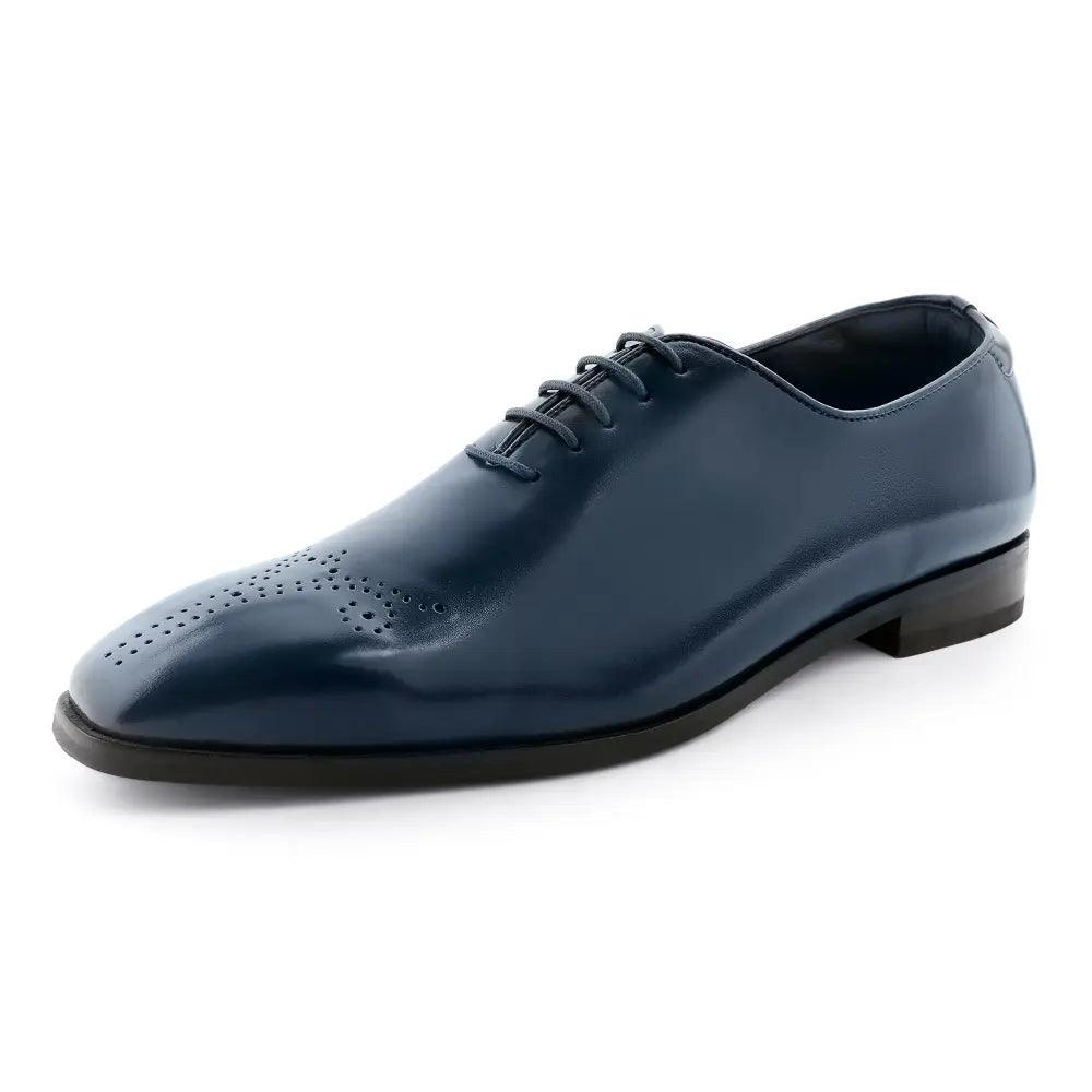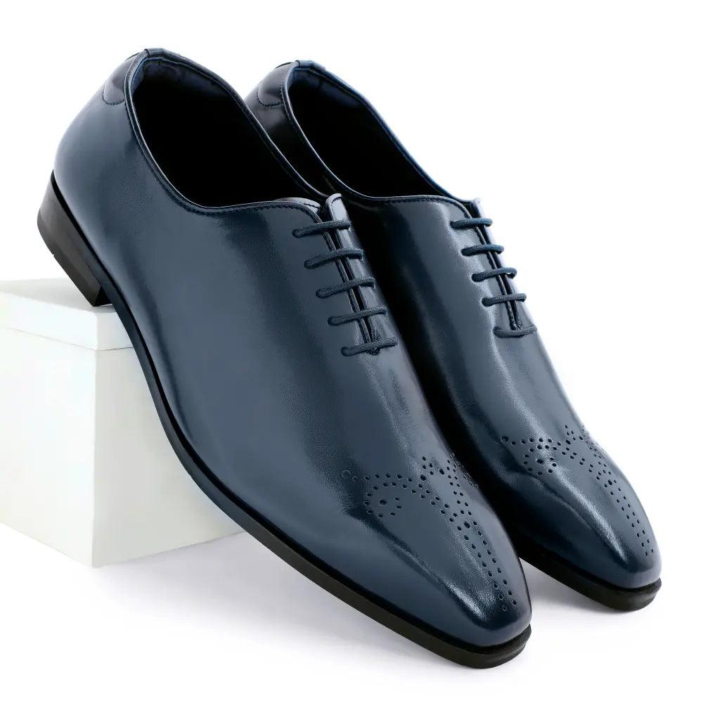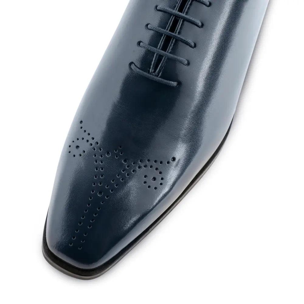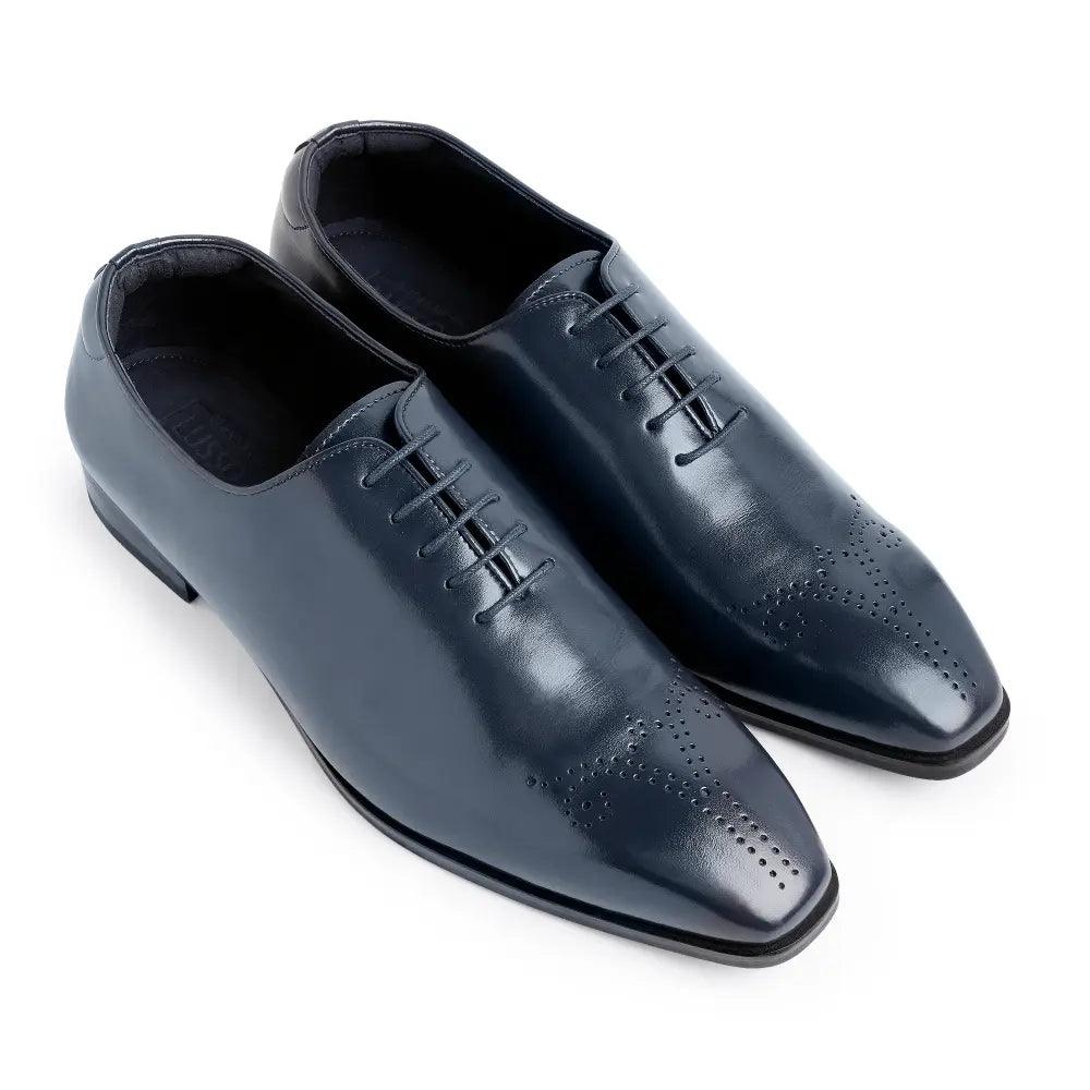 True craftsmanship and classy design, a show-stopping combination. The Aiden Navy Blue Brogue Lace Up is handcrafted with immense refinement. Featuring our all-new Square Toe silhouette, this pair of oxfords is a quintessential pair in a gentleman's collection. A deep navy blue hue on the upper and masterful broguing on the tip adds a touch of sophistication for an enigmatic look.