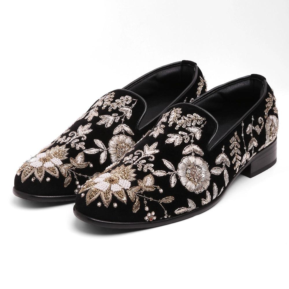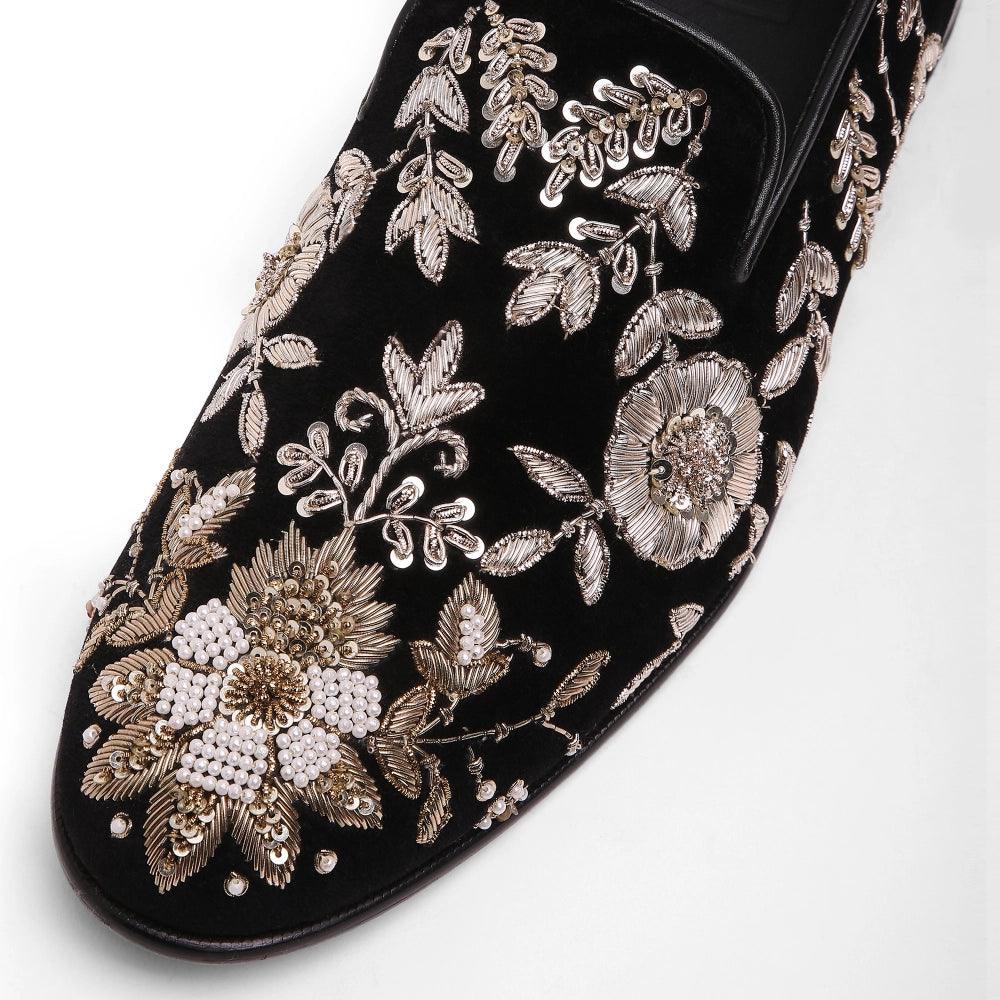For generations, zardosi has been a significant part of our Indian culture. From a simple haldi function to the biggest of wedding celebrations, Indian craftsmanship has seen it all. It brings us back to our roots in these modern times, holds our gaze into its never ending beauty. The "Mehar" is an embodiment of this splendour. A rich, intricately crafted pair of slip-ons with exceptional hand-done 'Zardosi', 'Motti' and 'Daaliya' work through out. We don't think you will be able to take your eyes off it, we know we can't.