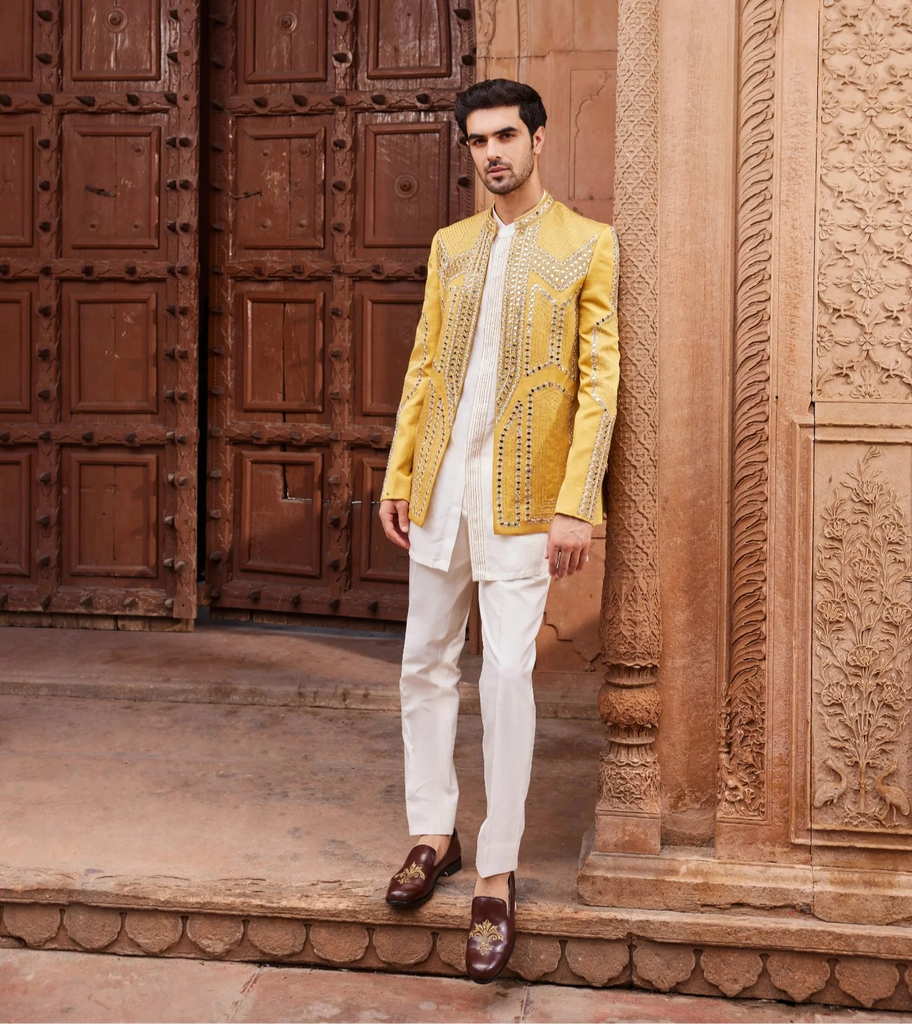 The "Samurai" is a pair that will fill you with pride and poise. Crafted in our beautiful dark tan upper, these pair of slip-on loafers are a true harmony between grace and splendour. This beautiful vegan slip-on is handcrafted with intricate zardozi work in golden. Truly awe-inspiring.